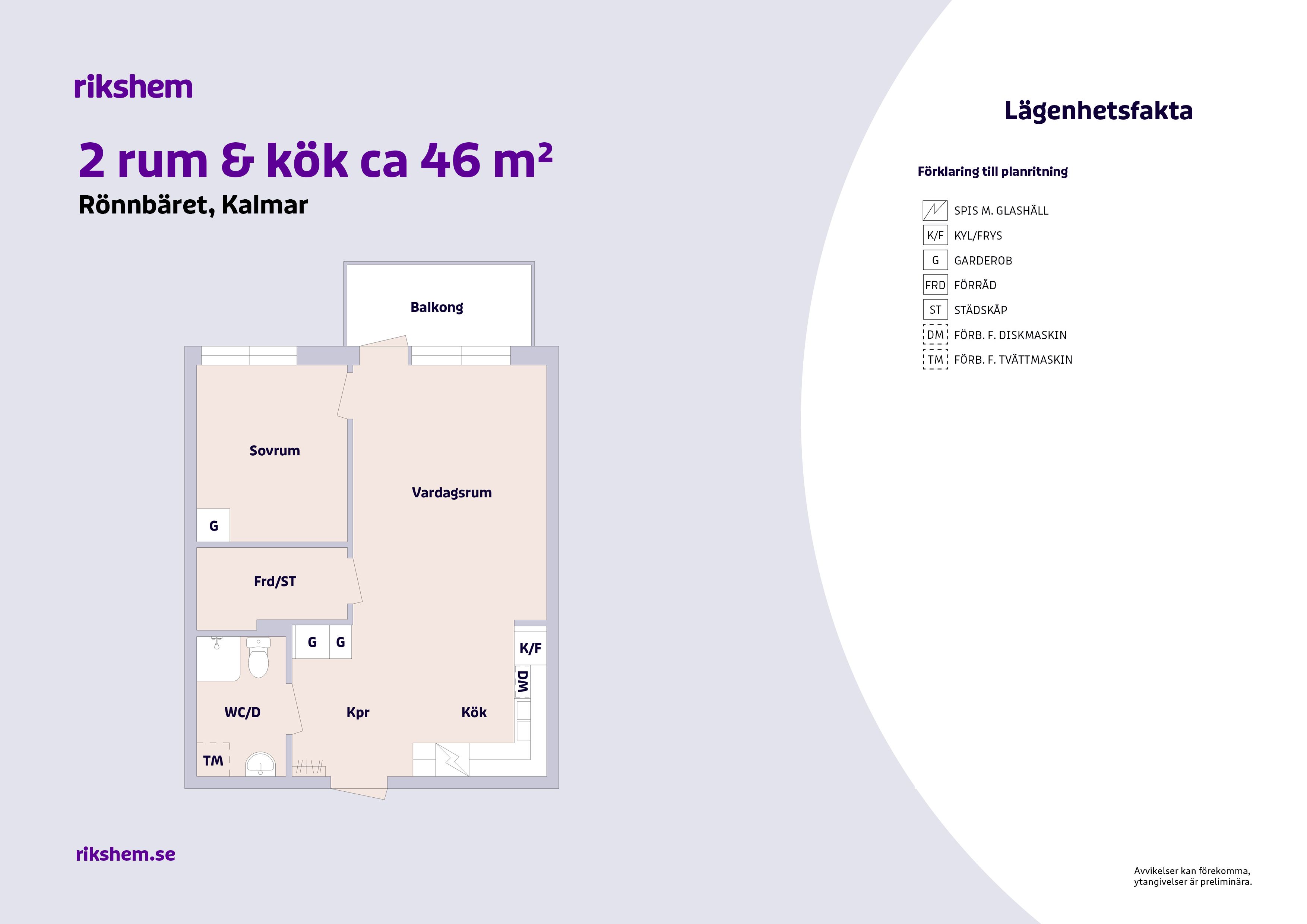 Rikshem reserverar sig mot eventuella fel eller avvikelser som kan förekomma i lägenhetsannonsen eller i planritningen.