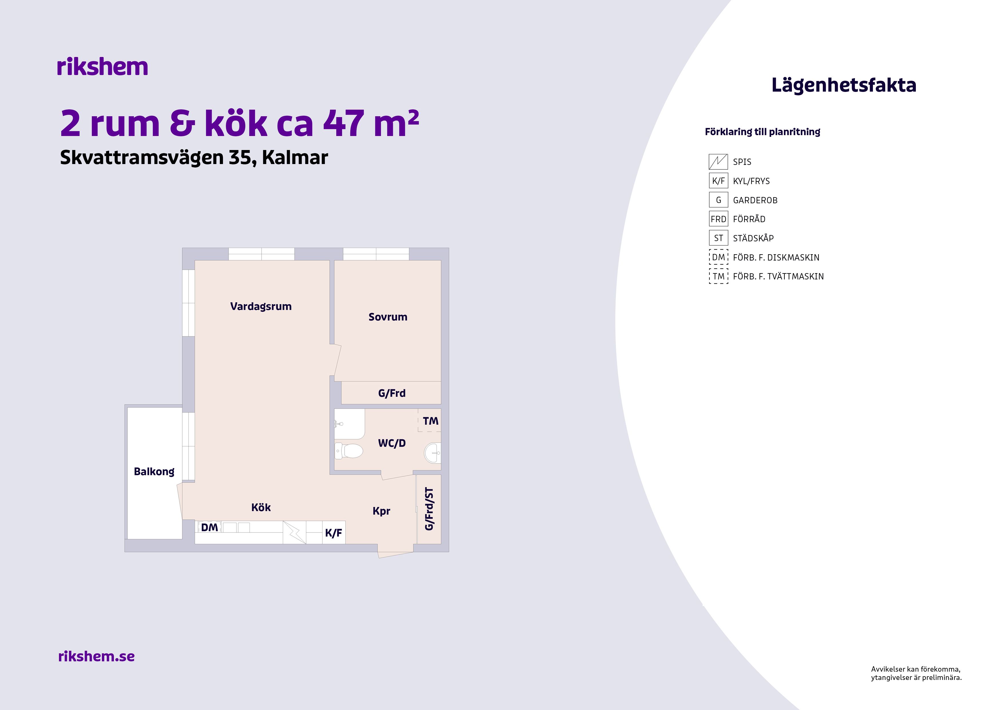 Rikshem reserverar sig mot eventuella fel eller avvikelser som kan förekomma i lägenhetsannonsen eller i planritningen.