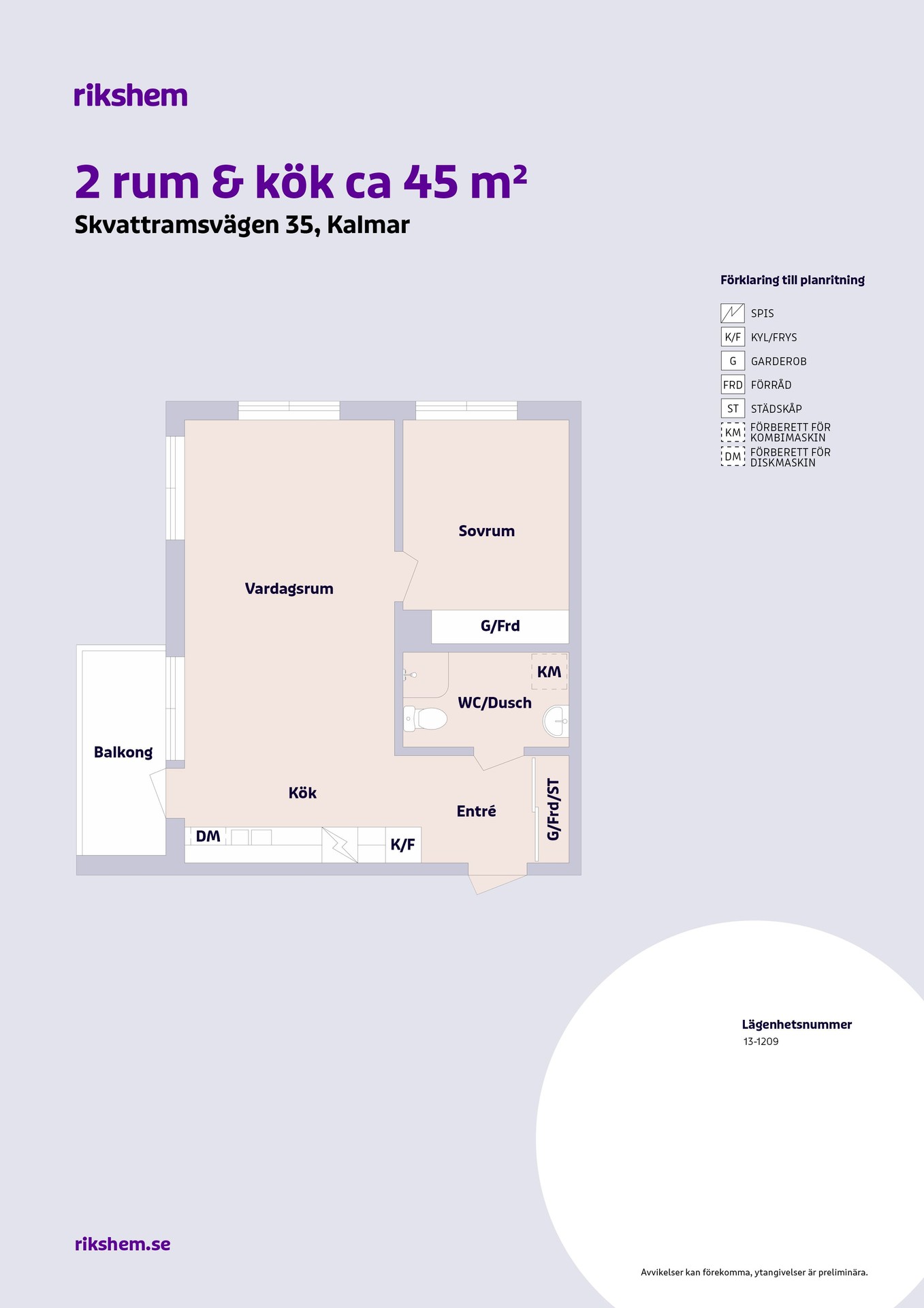 Rikshem reserverar sig mot eventuella fel eller avvikelser som kan förekomma i lägenhetsannonsen eller i planritningen.