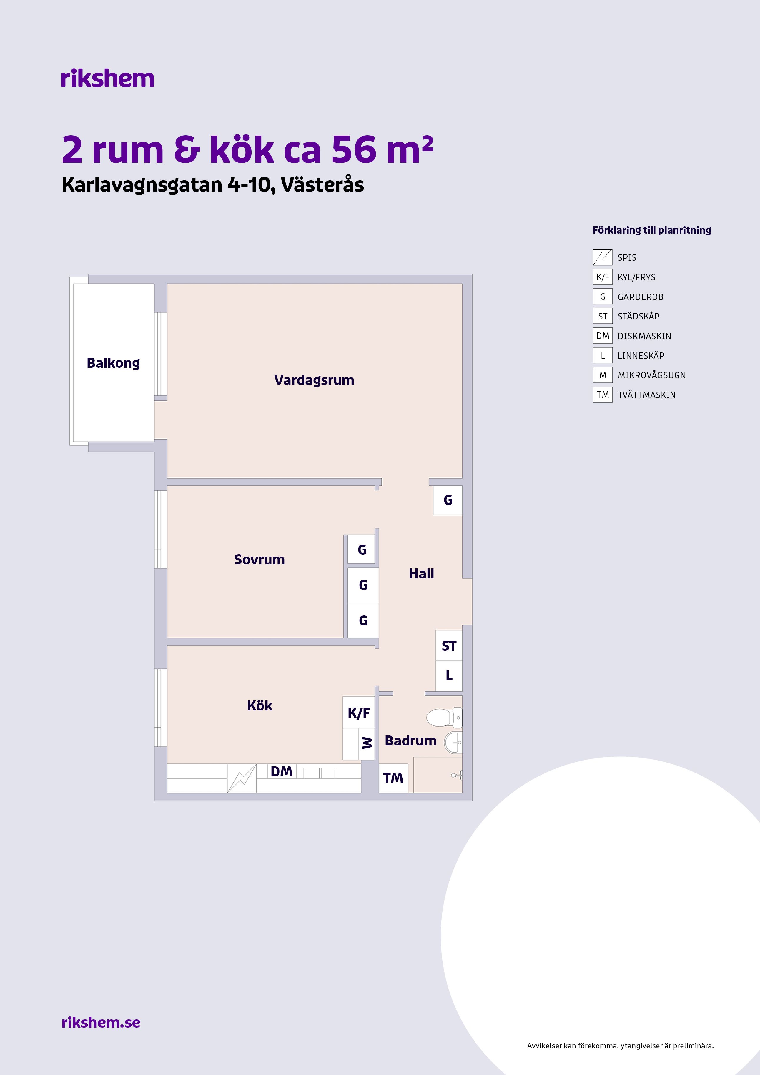 Rikshem reserverar sig mot eventuella fel eller avvikelser som kan förekomma i lägenhetsannonsen eller i planritningen.