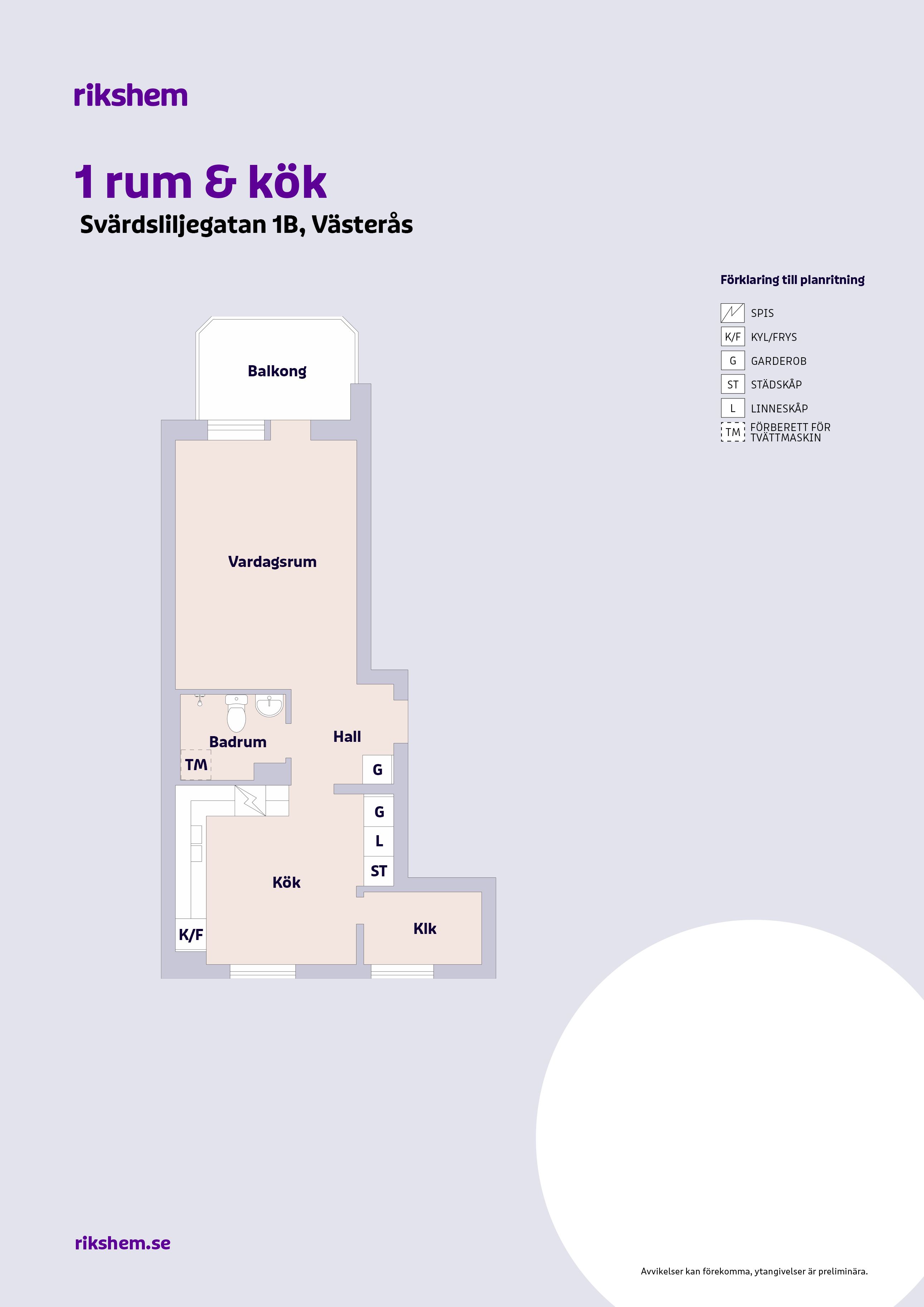 Rikshem reserverar sig mot eventuella fel eller avvikelser som kan förekomma i lägenhetsannonsen eller i planritningen.