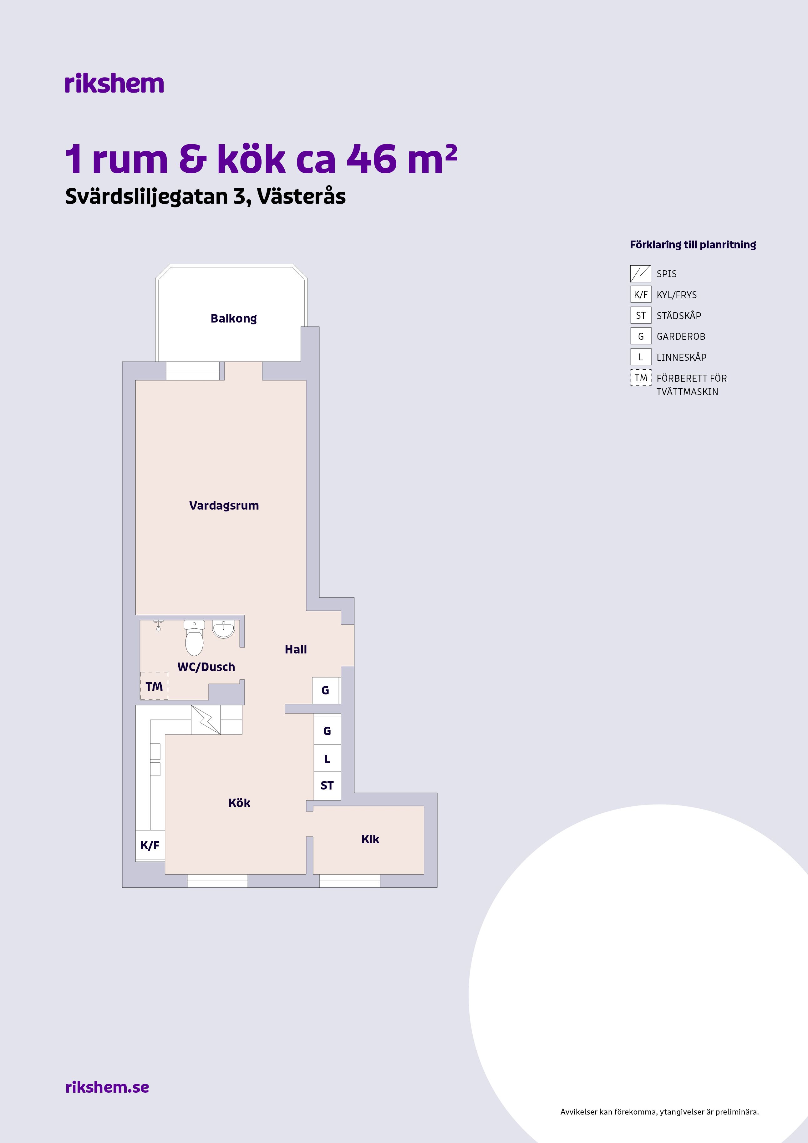 Rikshem reserverar sig mot eventuella fel eller avvikelser som kan förekomma i lägenhetsannonsen eller i planritningen.