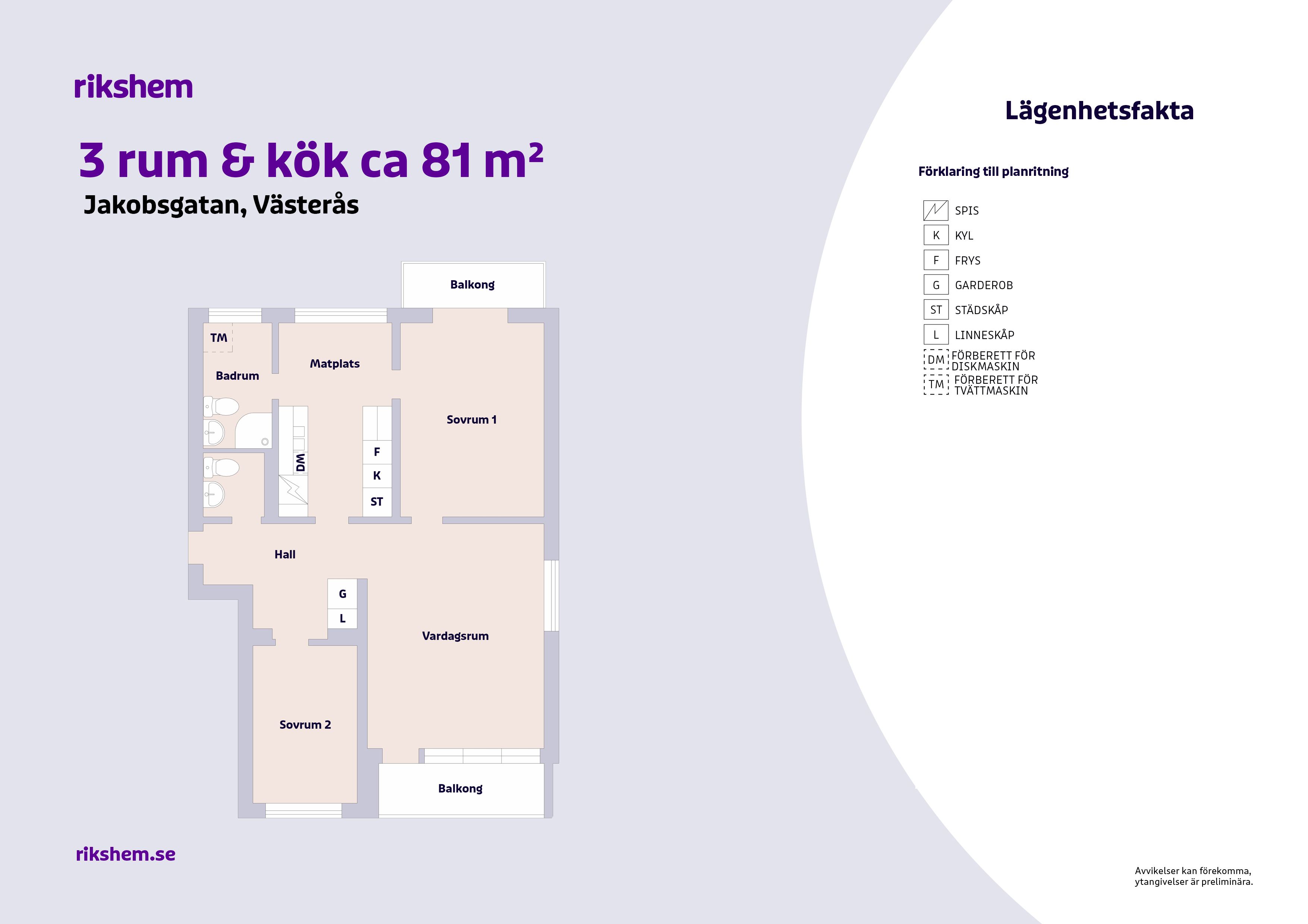 Rikshem reserverar sig mot eventuella fel eller avvikelser som kan förekomma i lägenhetsannonsen eller i planritningen.