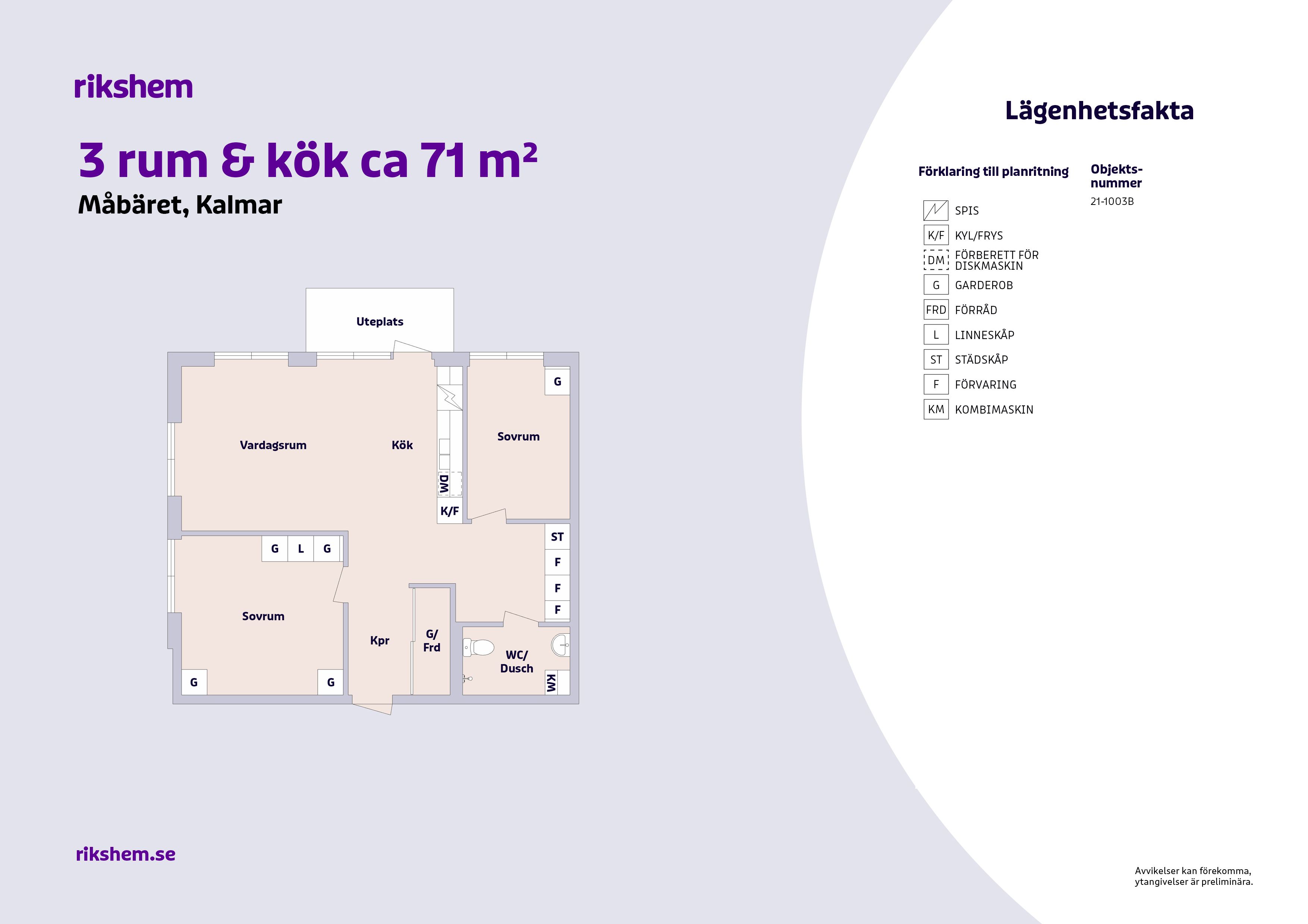 Rikshem reserverar sig mot eventuella fel eller avvikelser som kan förekomma i lägenhetsannonsen eller i planritningen.