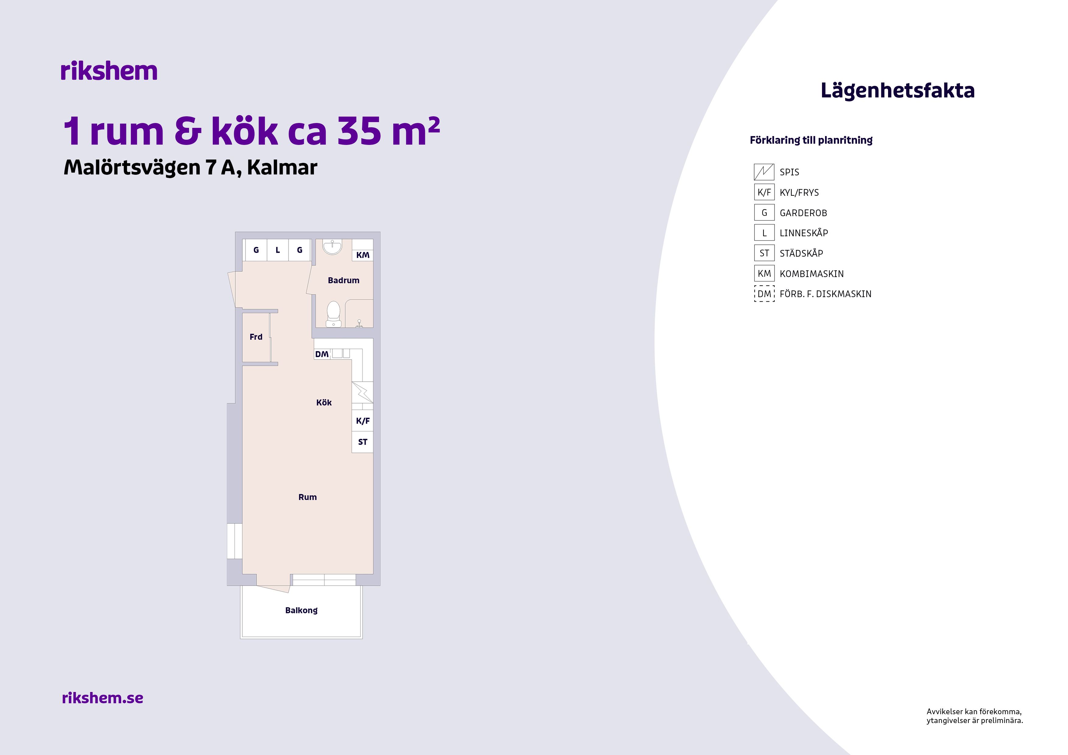 Rikshem reserverar sig mot eventuella fel eller avvikelser som kan förekomma i lägenhetsannonsen eller i planritningen.