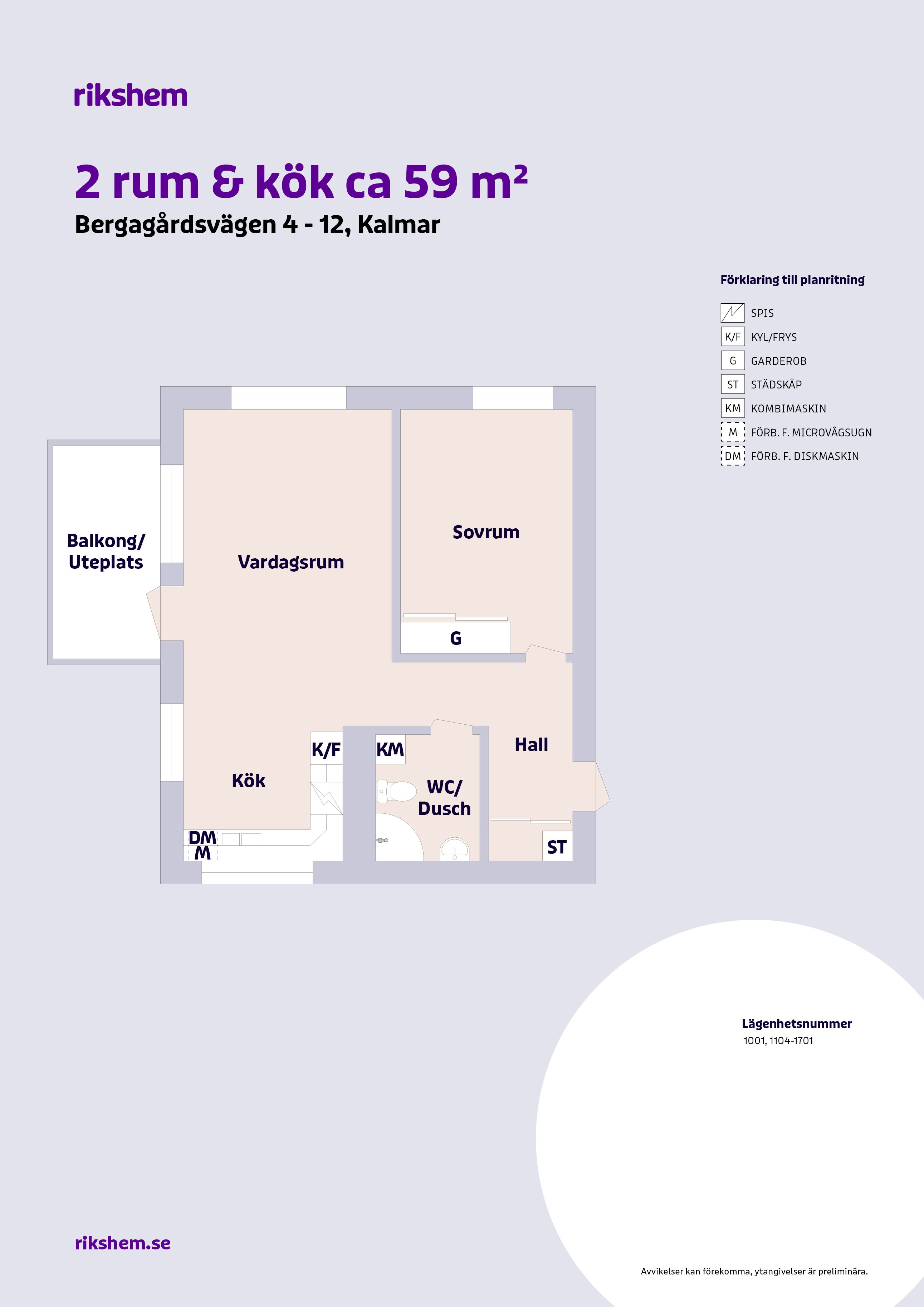 Rikshem reserverar sig mot eventuella fel eller avvikelser som kan förekomma i lägenhetsannonsen eller i planritningen.