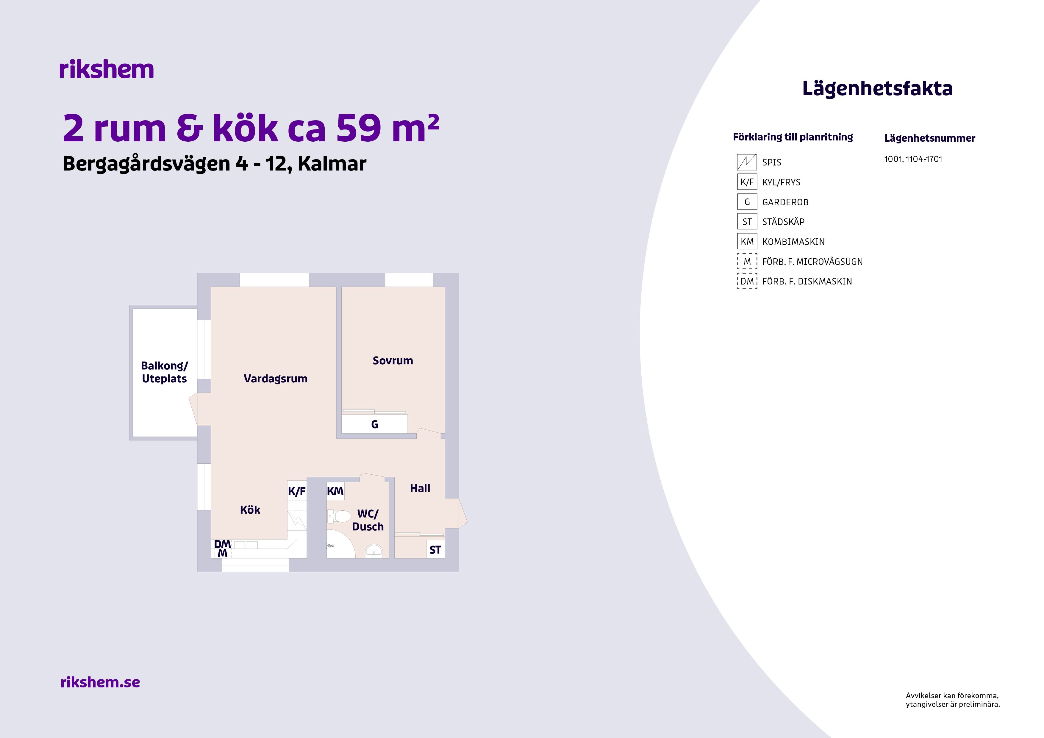 Rikshem reserverar sig mot eventuella fel eller avvikelser som kan förekomma i lägenhetsannonsen eller i planritningen.
