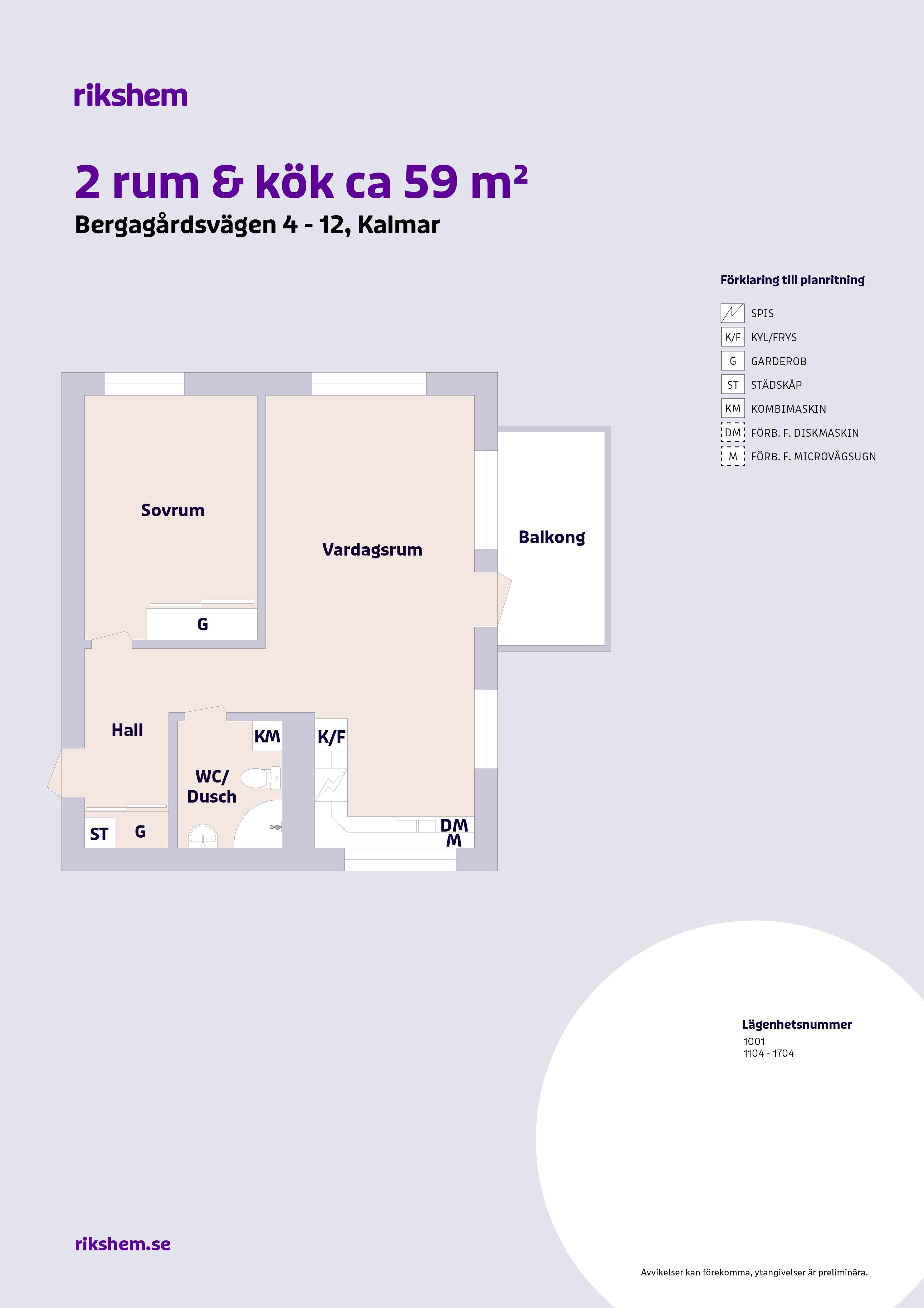 Rikshem reserverar sig mot eventuella fel eller avvikelser som kan förekomma i lägenhetsannonsen eller i planritningen.