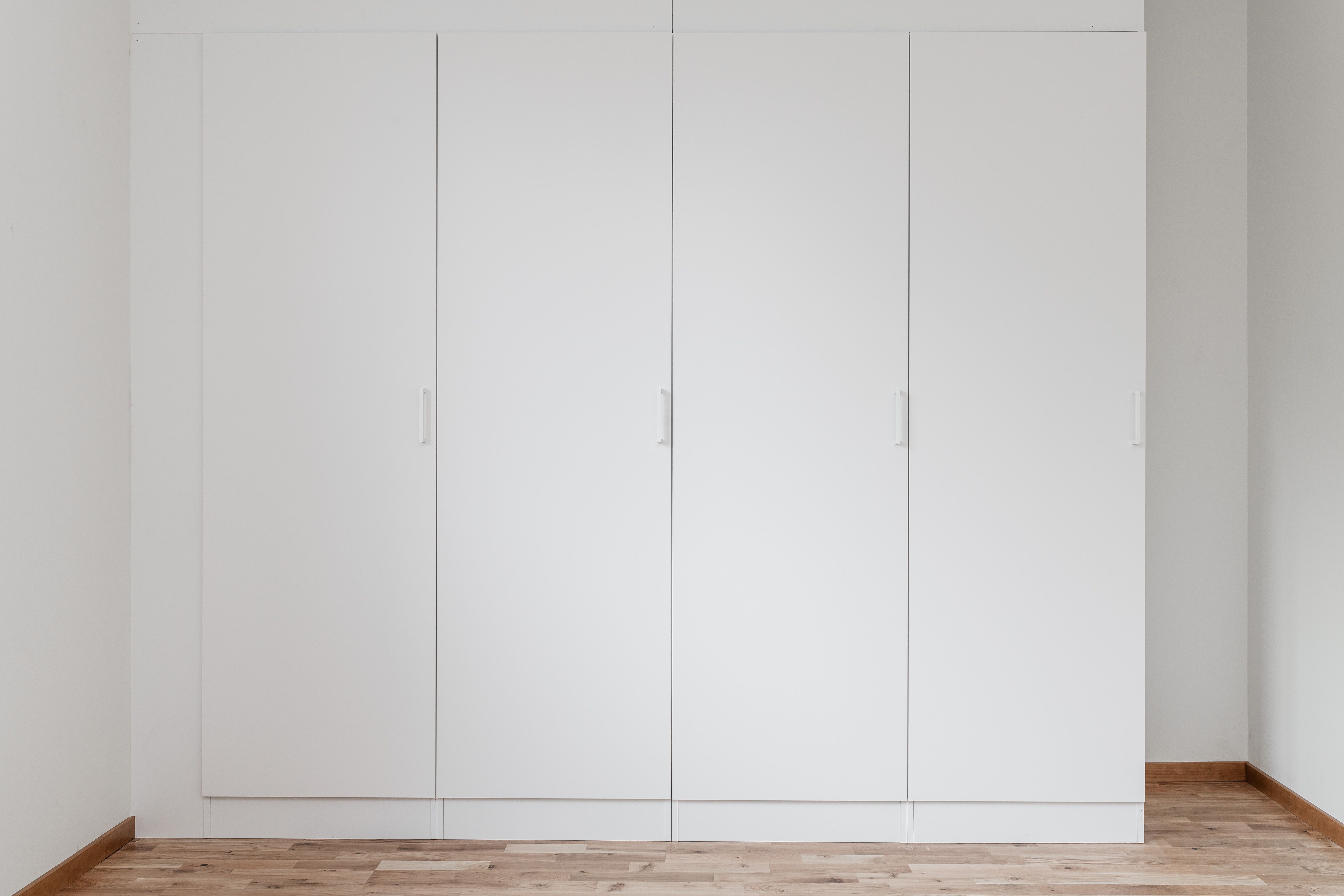 Inrymmer dubbelsäng och annat önskat möblemang. Gott om förvaringsytor i garderobsvägg.