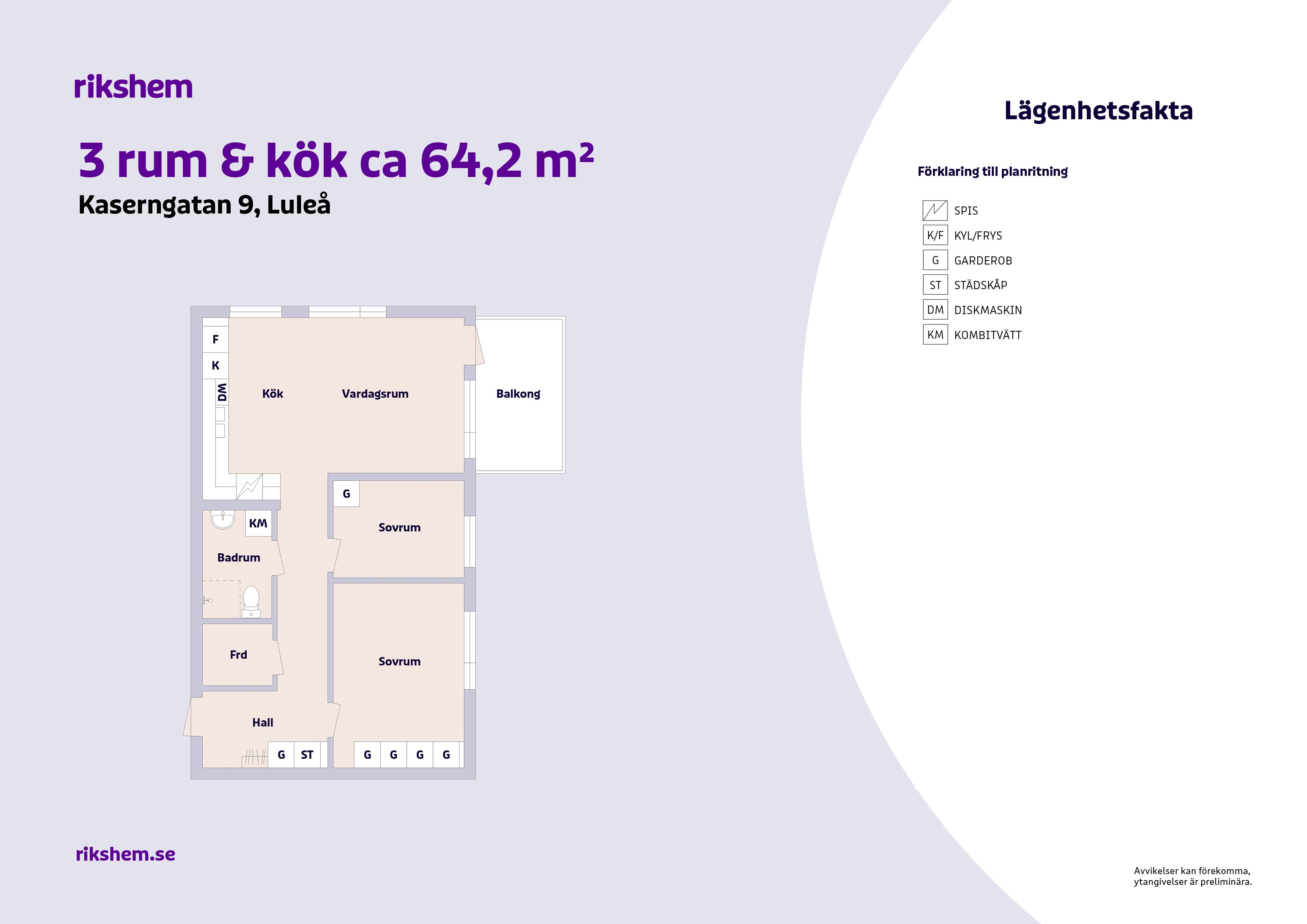 Rikshem reserverar sig mot eventuella fel eller avvikelser som kan förekomma i lägenhetsannonsen eller i planritningen.