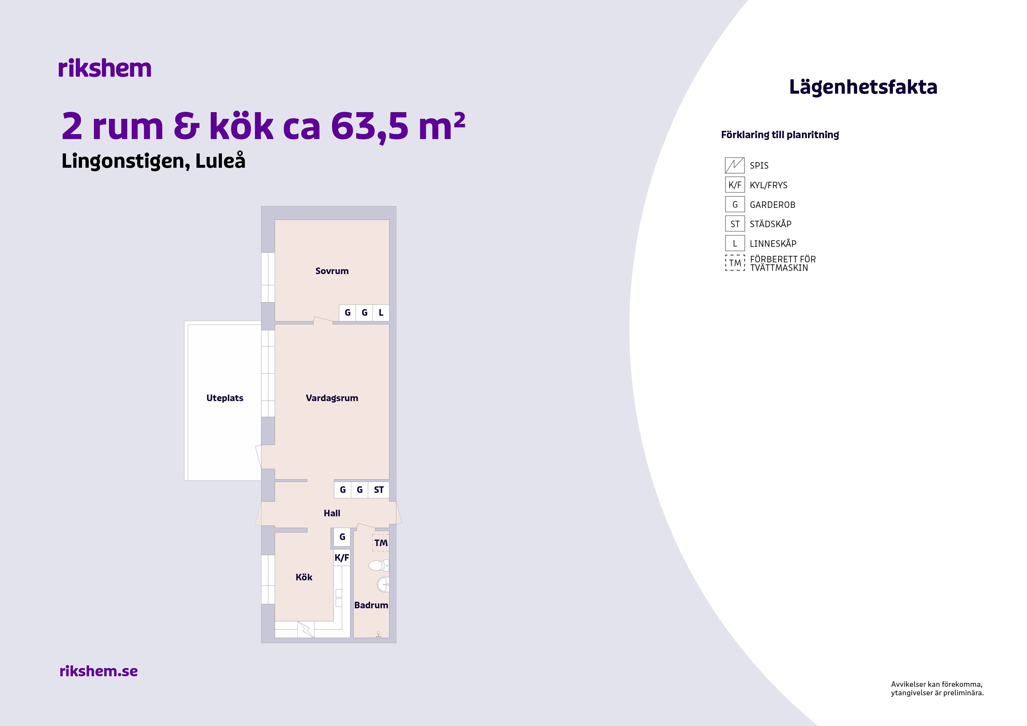 Rikshem reserverar sig mot eventuella fel eller avvikelser som kan förekomma i lägenhetsannonsen eller i planritningen.