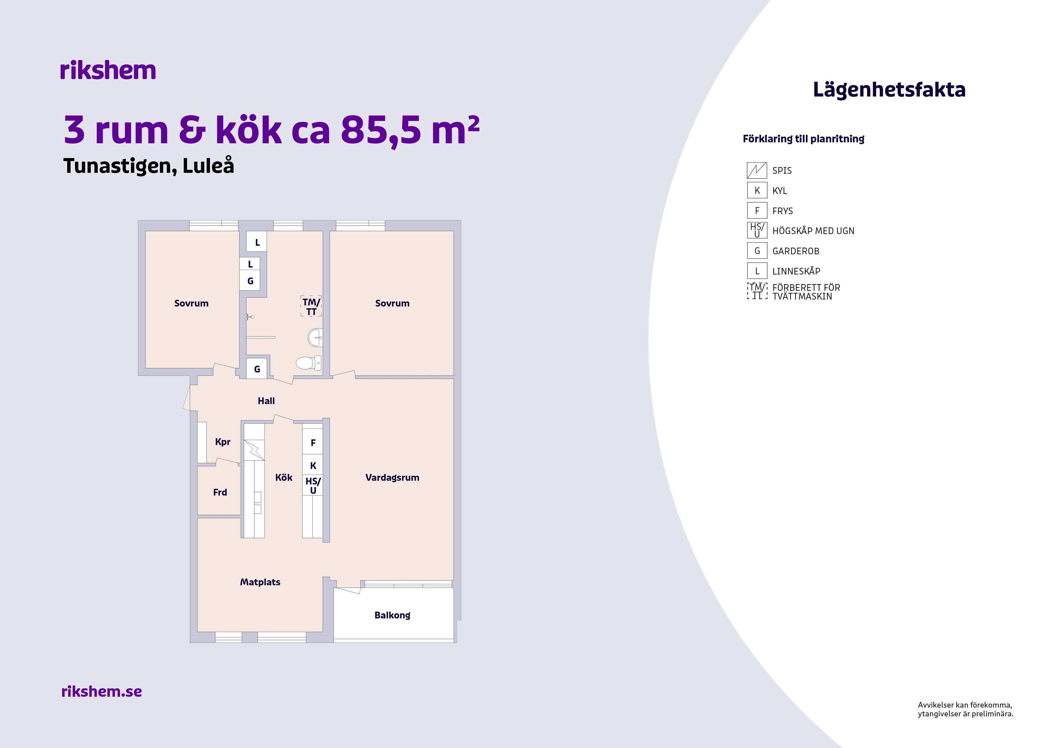 Rikshem reserverar sig mot eventuella fel eller avvikelser som kan förekomma i lägenhetsannonsen eller i planritningen.