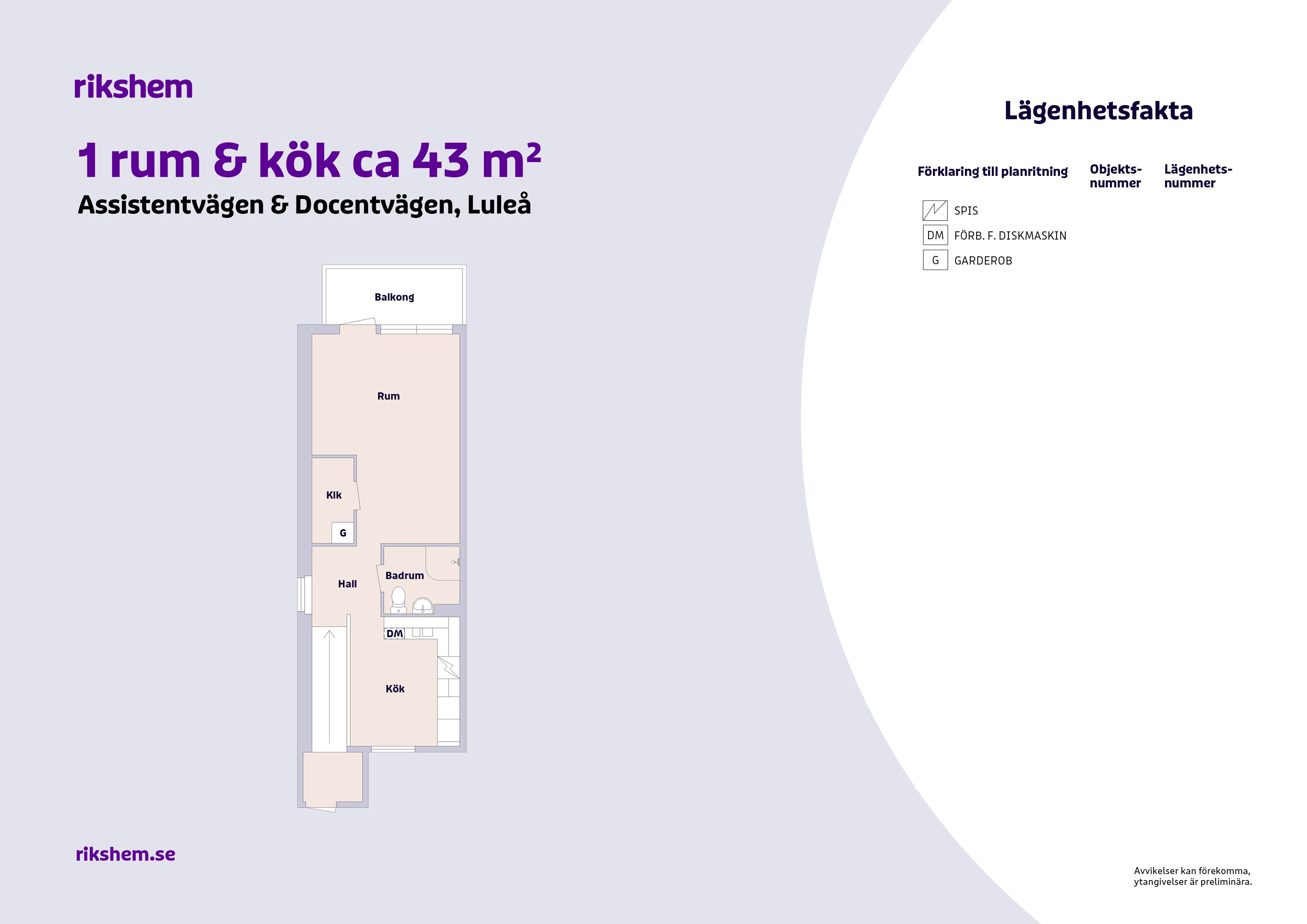 Rikshem reserverar sig mot eventuella fel eller avvikelser som kan förekomma i lägenhetsannonsen eller i planritningen.