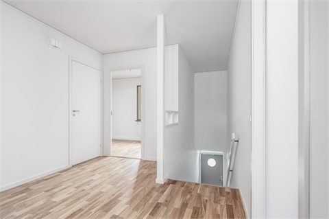 Lägenheten består av: Praktisk hall med egen ingång, klinker vid ytterdörren och hatthylla för klädupphängning samt hall på övre plan med plats för mindre möblemang.