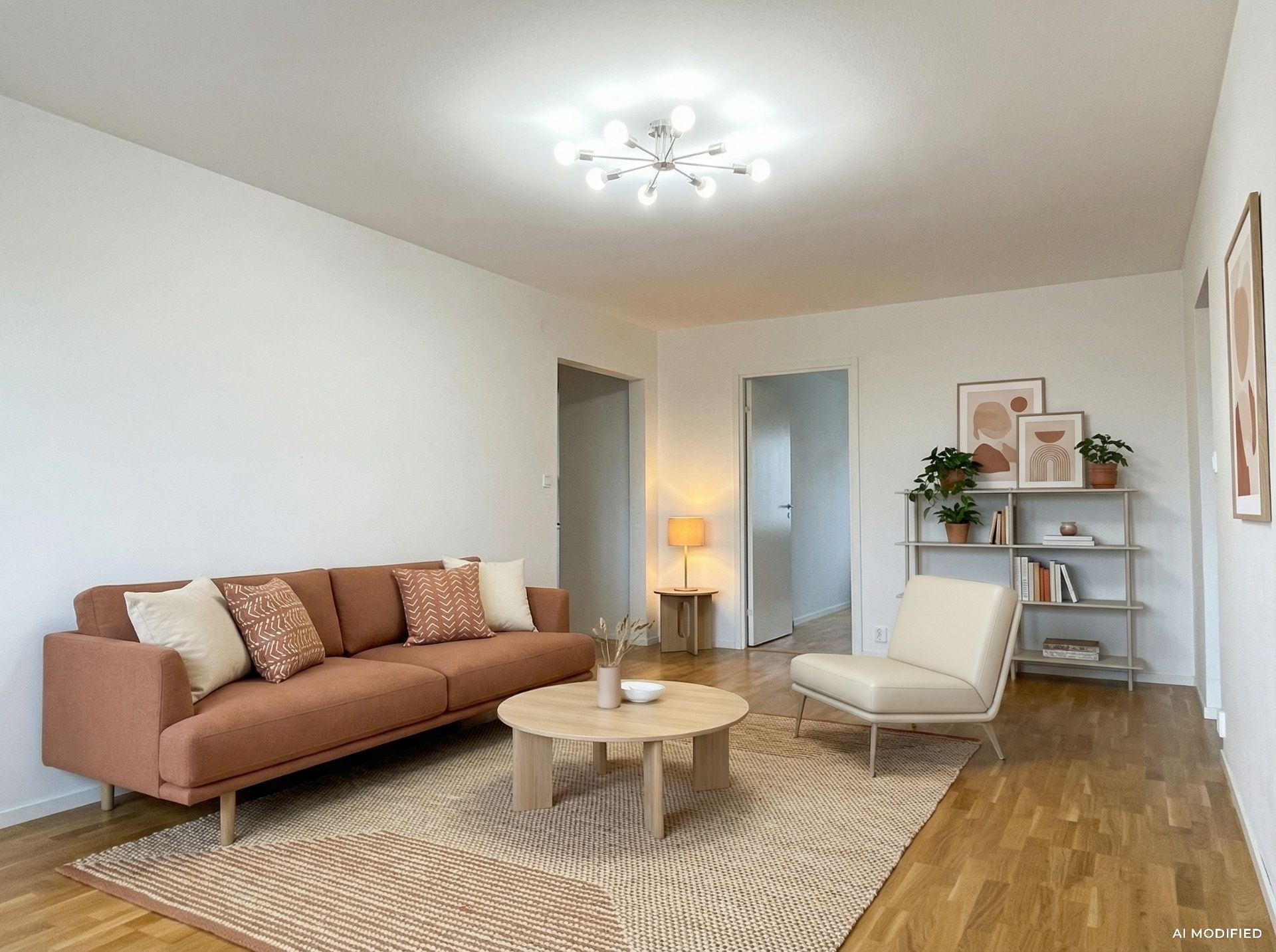 - Härligt vardagsrum med parkettgolv och utgång till balkong.