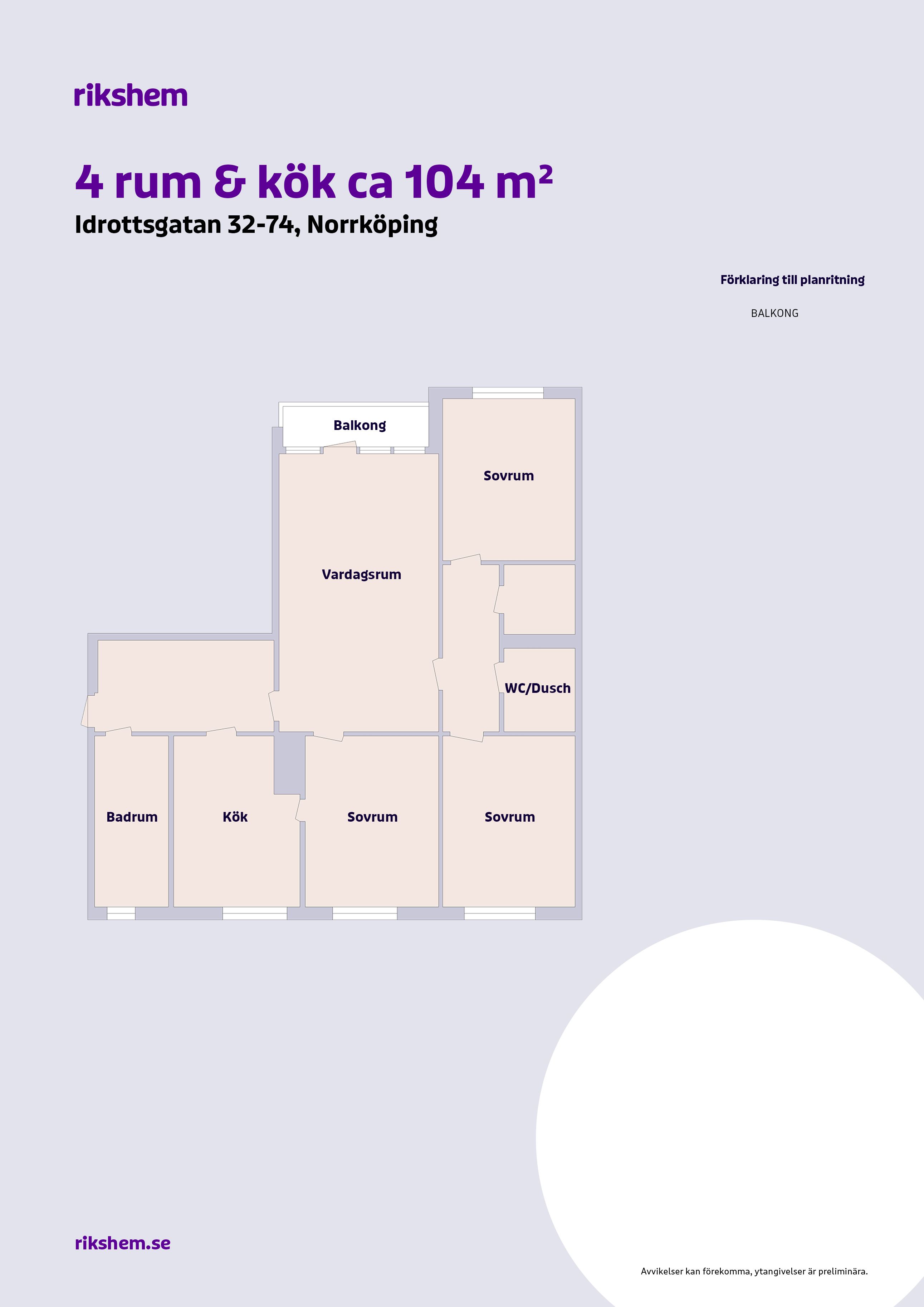 Rikshem reserverar sig mot eventuella fel eller avvikelser som kan förekomma i lägenhetsannonsen eller i planritningen.
