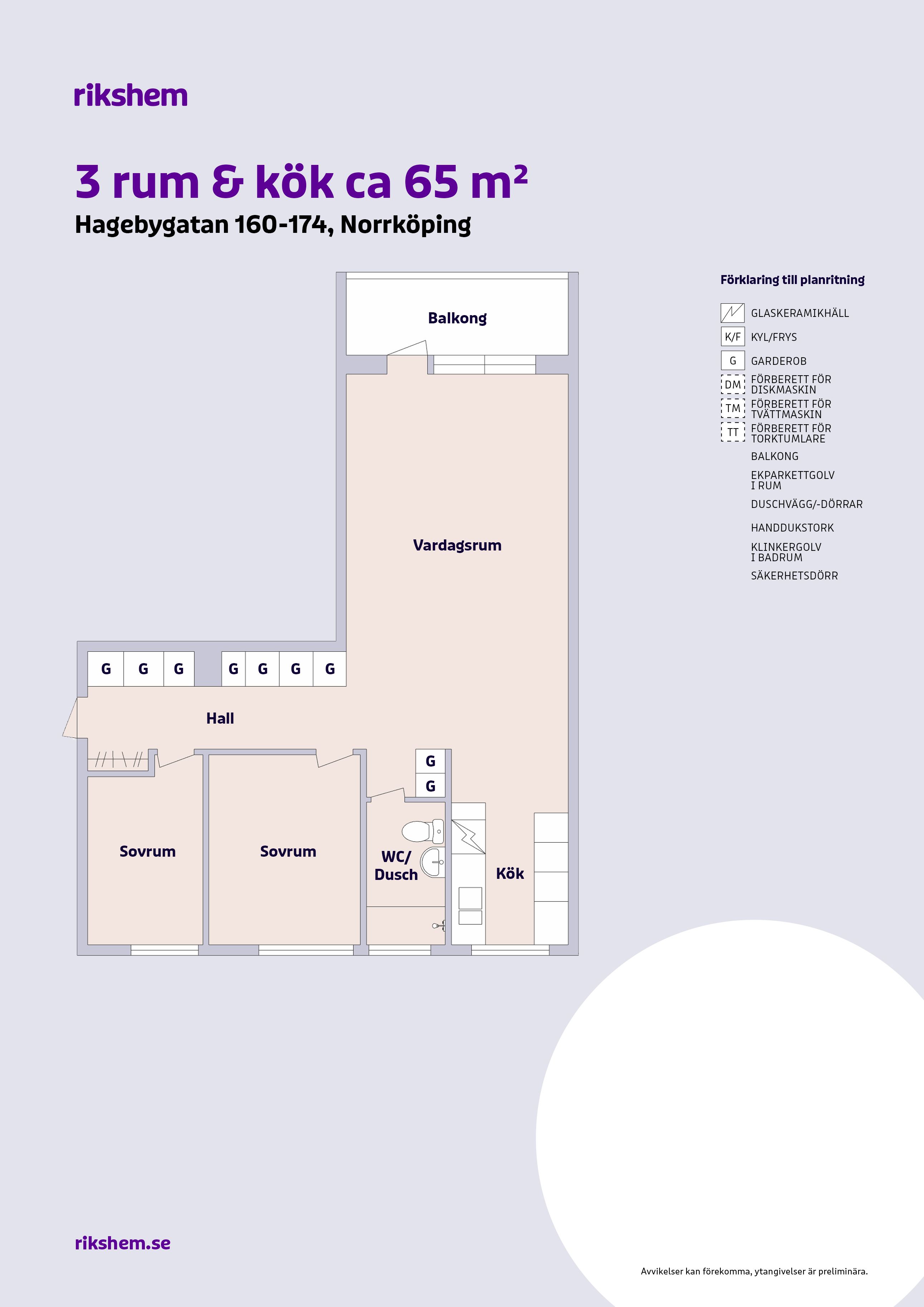 Rikshem reserverar sig mot eventuella fel eller avvikelser som kan förekomma i lägenhetsannonsen eller i planritningen.