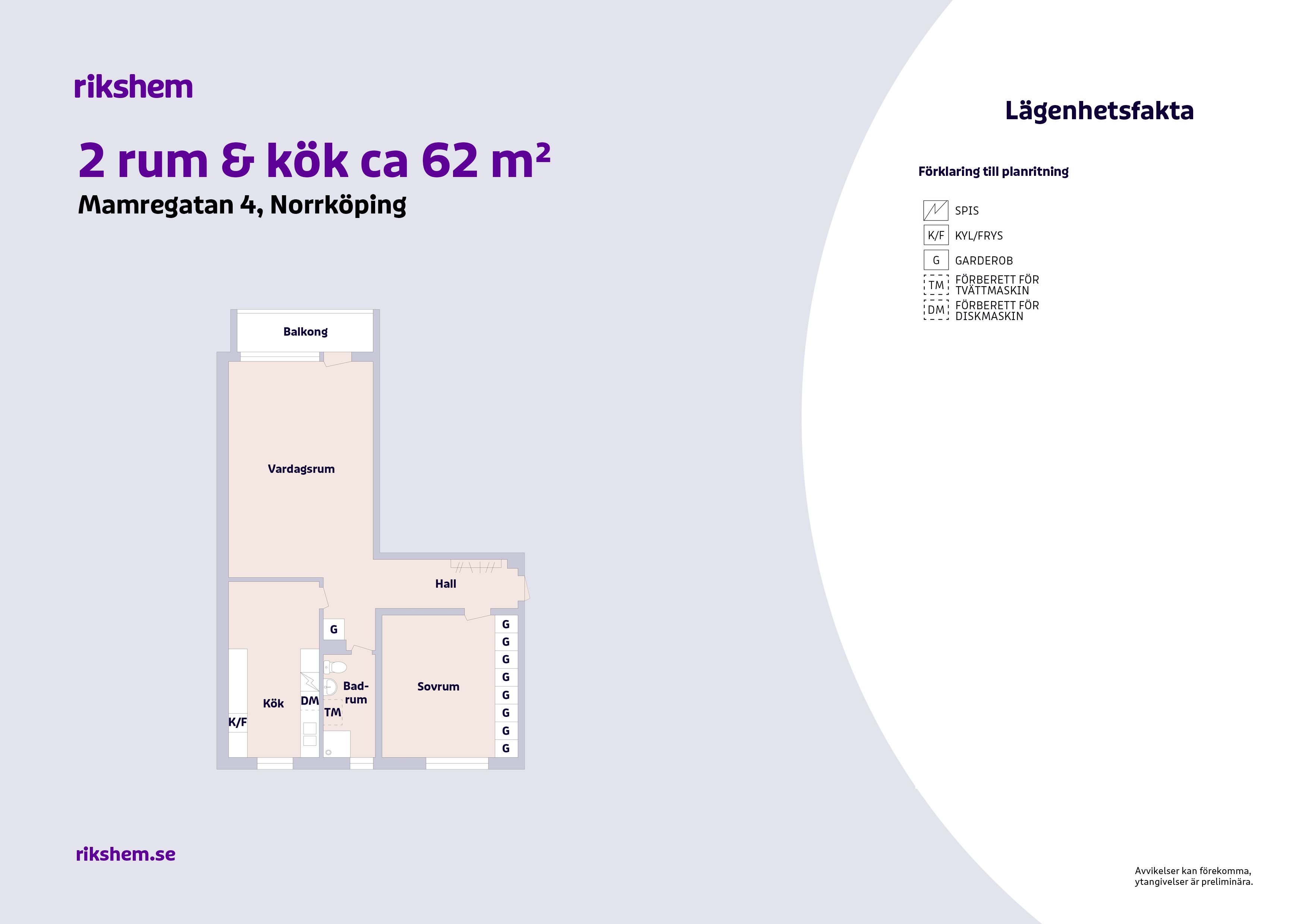 Rikshem reserverar sig mot eventuella fel eller avvikelser som kan förekomma i lägenhetsannonsen eller i planritningen.