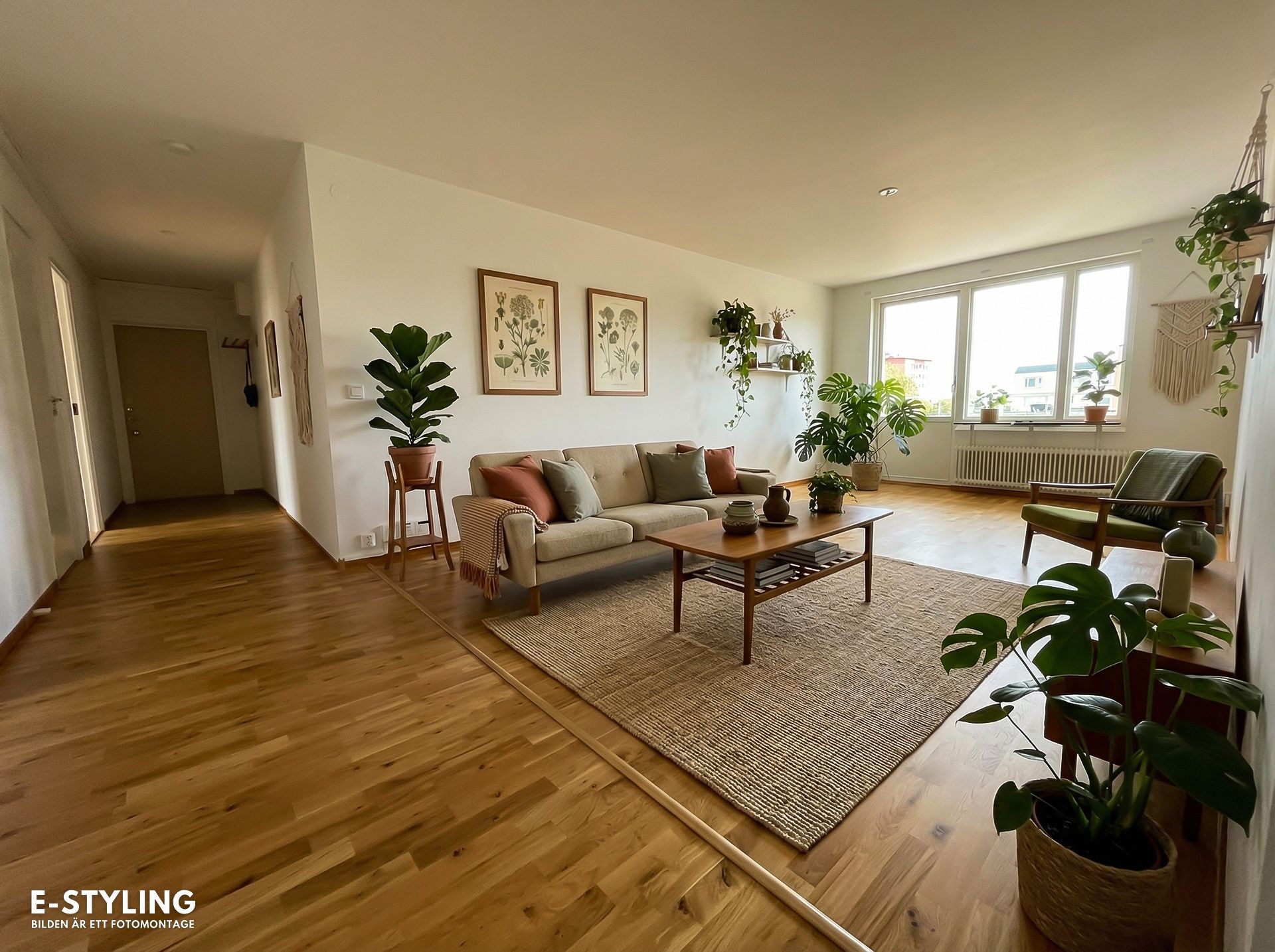 Vardagsrum med fint ljusinsläpp och utgång till balkong.