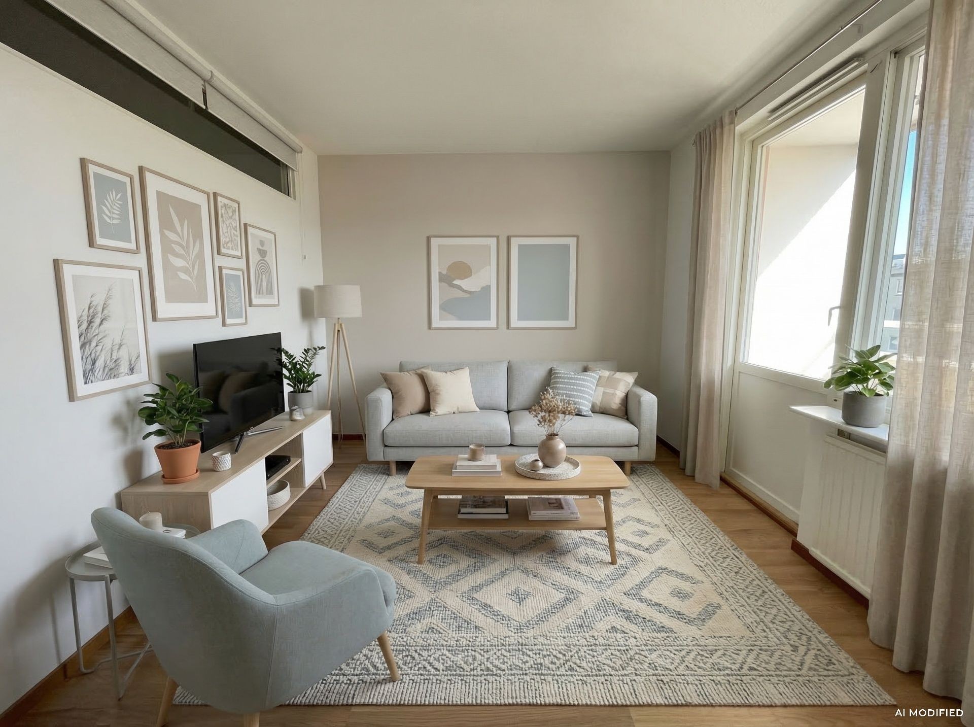 - Vardagsrum med fint ljusinsläpp och utgång till balkong