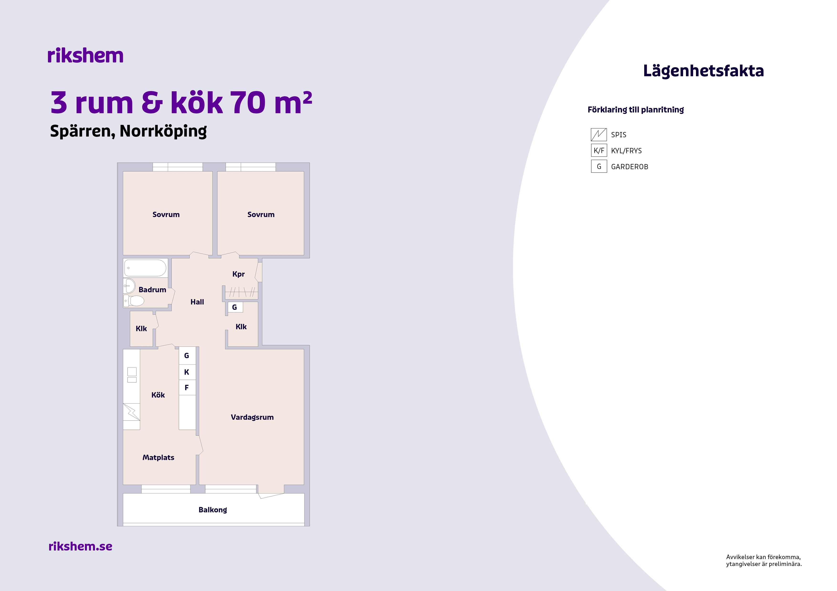 Rikshem reserverar sig mot eventuella fel eller avvikelser som kan förekomma i lägenhetsannonsen eller i planritningen.
