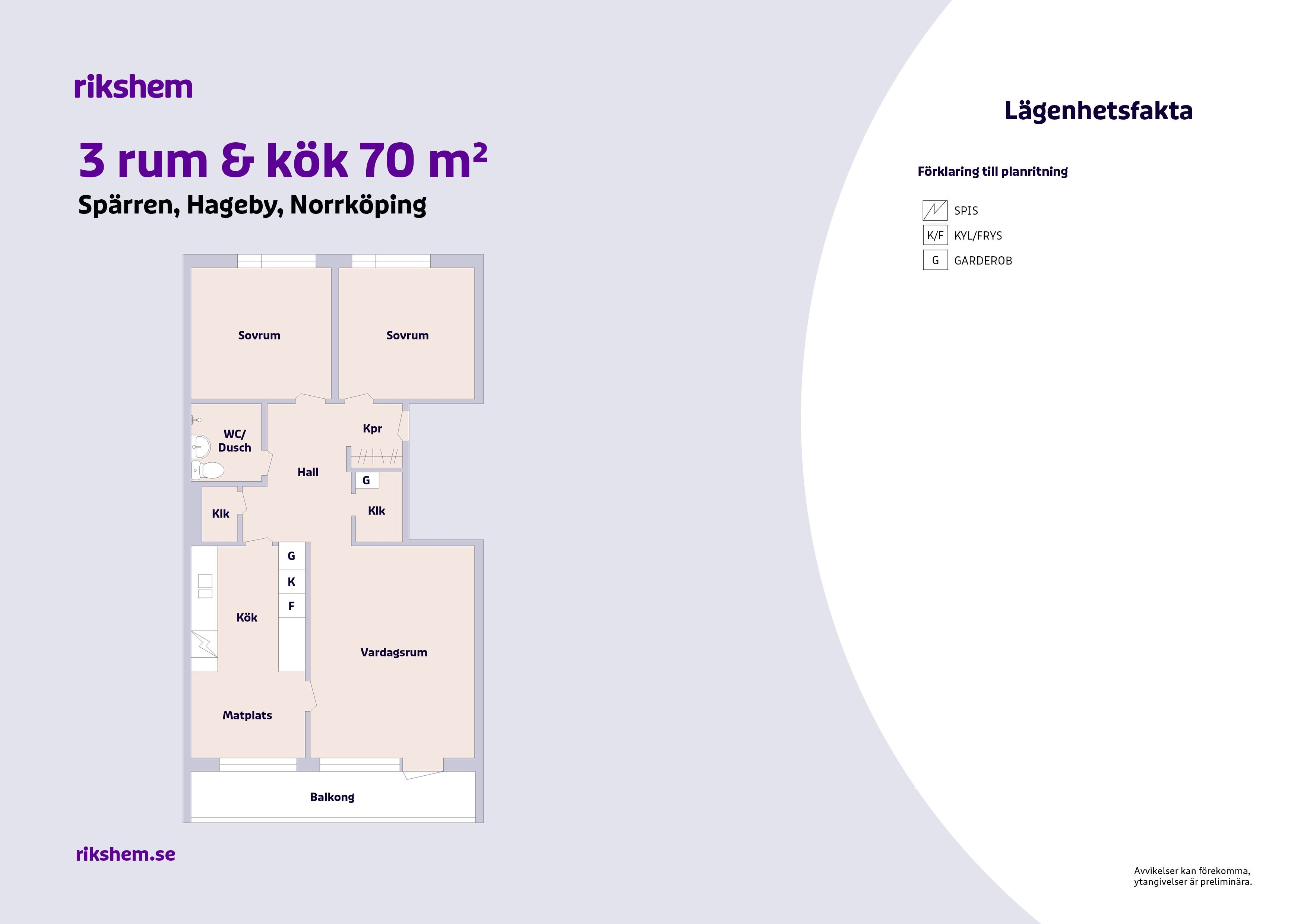 Rikshem reserverar sig mot eventuella fel eller avvikelser som kan förekomma i lägenhetsannonsen eller i planritningen.