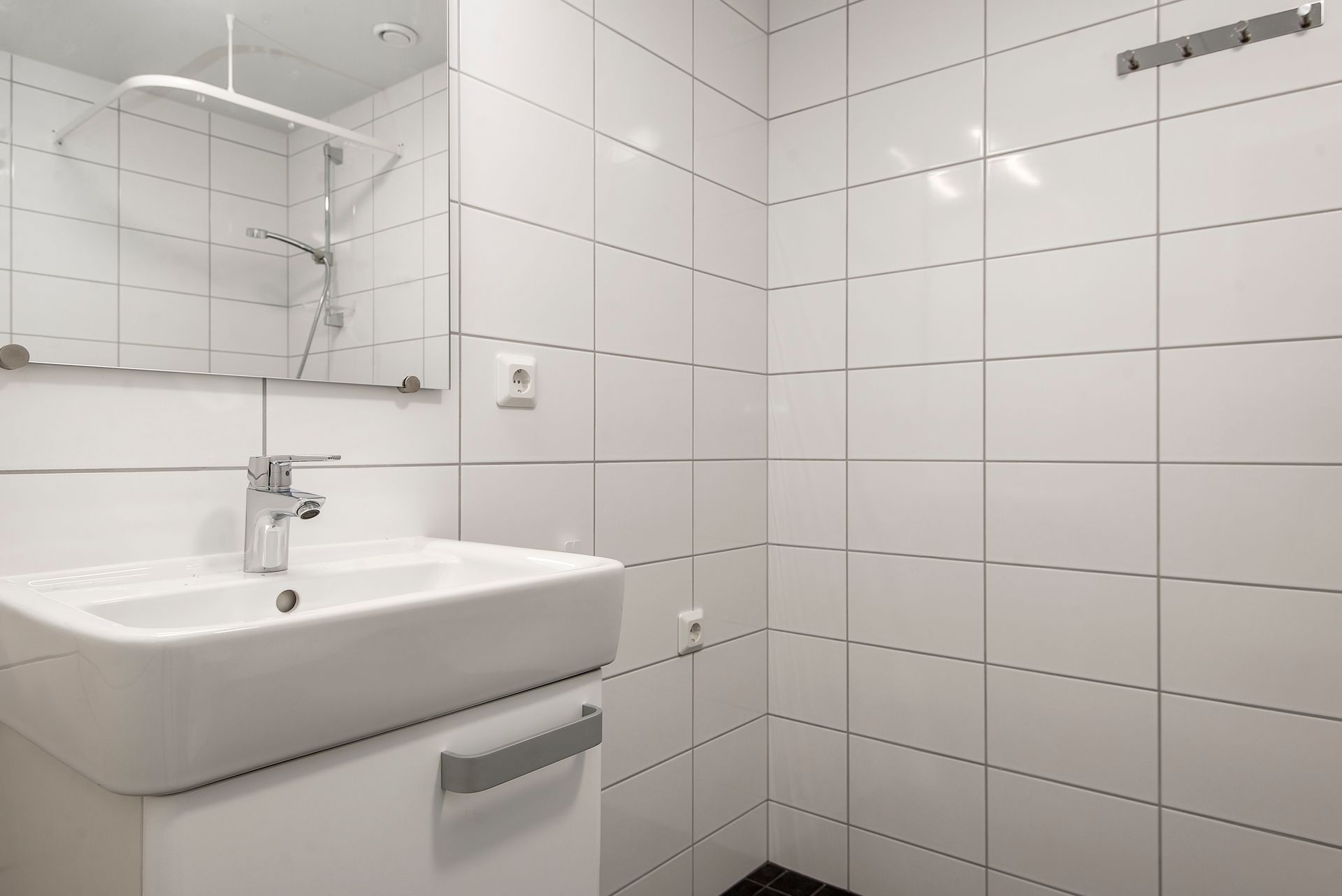 - Rymligt badrum med vitt kakel och grå klinkers. Badrummet är utrustat med tvättställ, spegel, wc, elektrisk golvvärme. Det är även förberett för tvättmaskin.