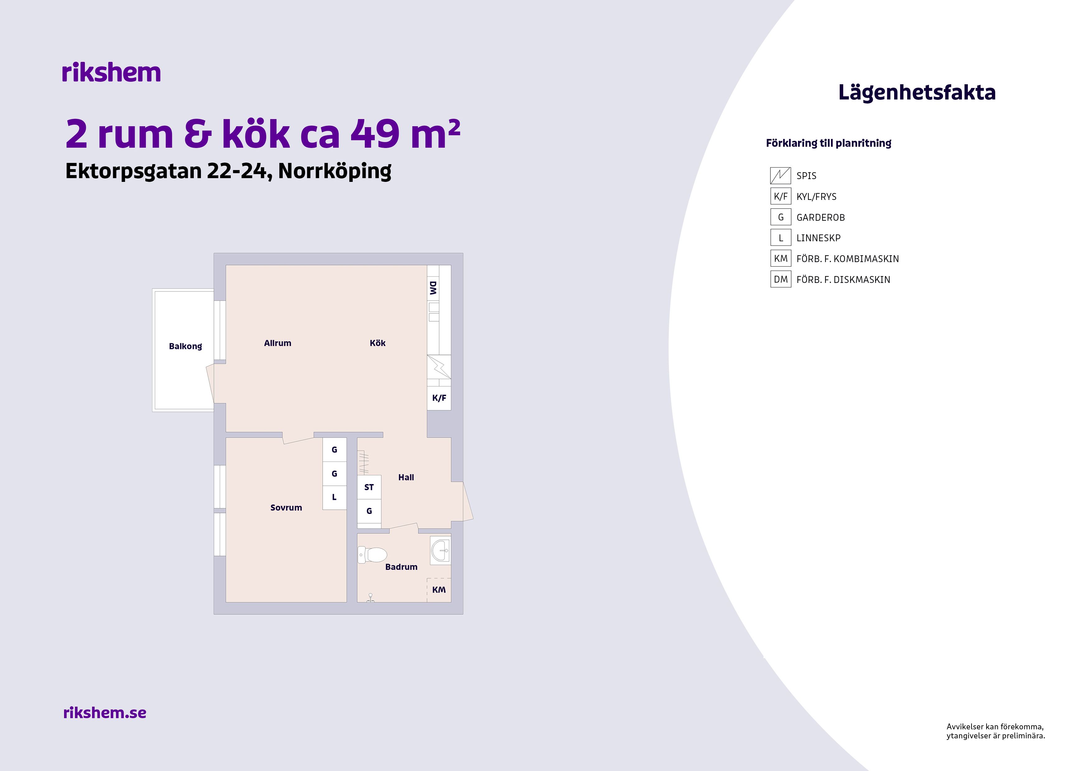 Rikshem reserverar sig mot eventuella fel eller avvikelser som kan förekomma i lägenhetsannonsen eller i planritningen.