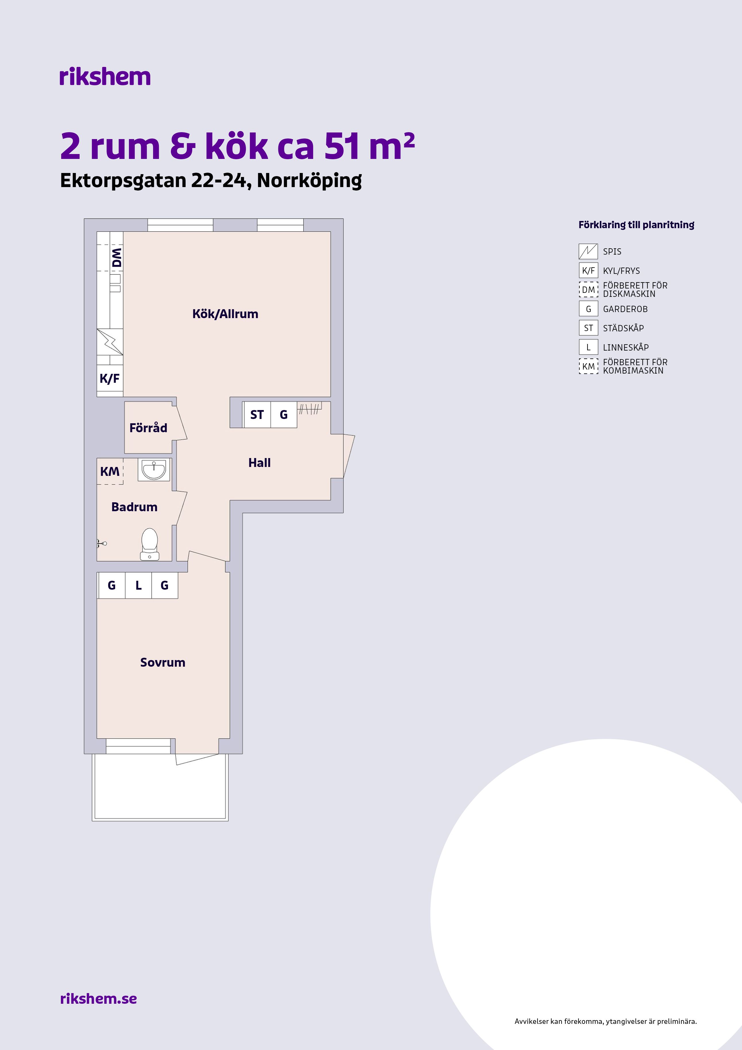 Rikshem reserverar sig mot eventuella fel eller avvikelser som kan förekomma i lägenhetsannonsen eller i planritningen.