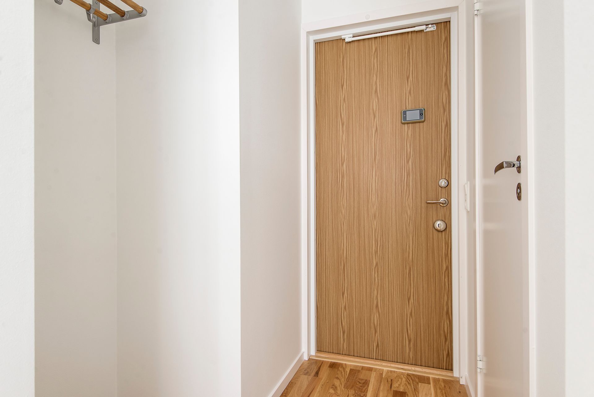 Hall med hatthylla.