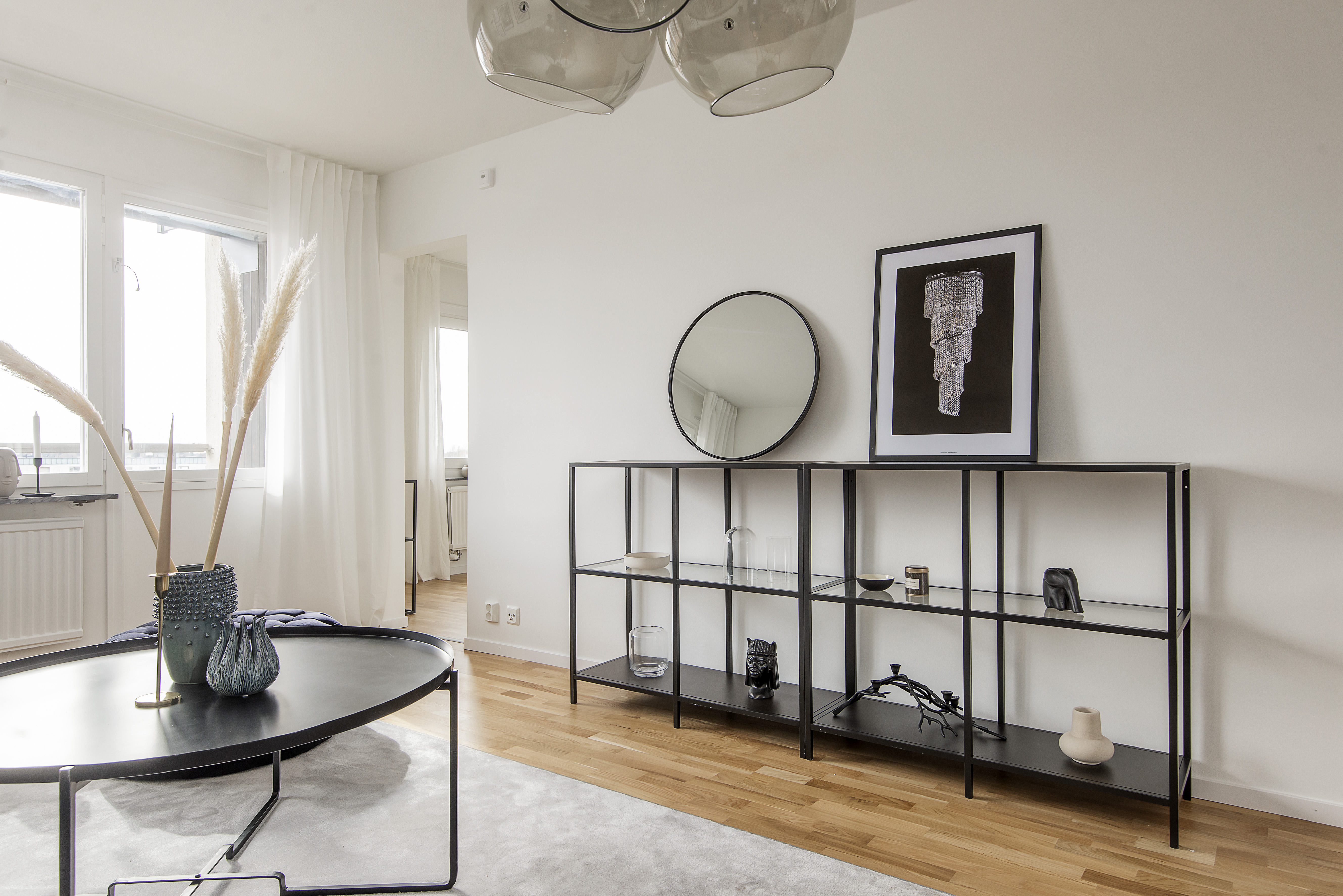 Renoverad trea i populära Ektorp med vitmålade väggar och ekparkettgolv. Här finns bekvämligheter som balkong/fransk balkong som nås från vardagsrummet, tvättstuga (placerad i källaren) med elektronisk bokning, säkerhetsdörr med digitalt tittöga och postboxar i entréplan samt ett källarförråd som tillhör bostaden.
