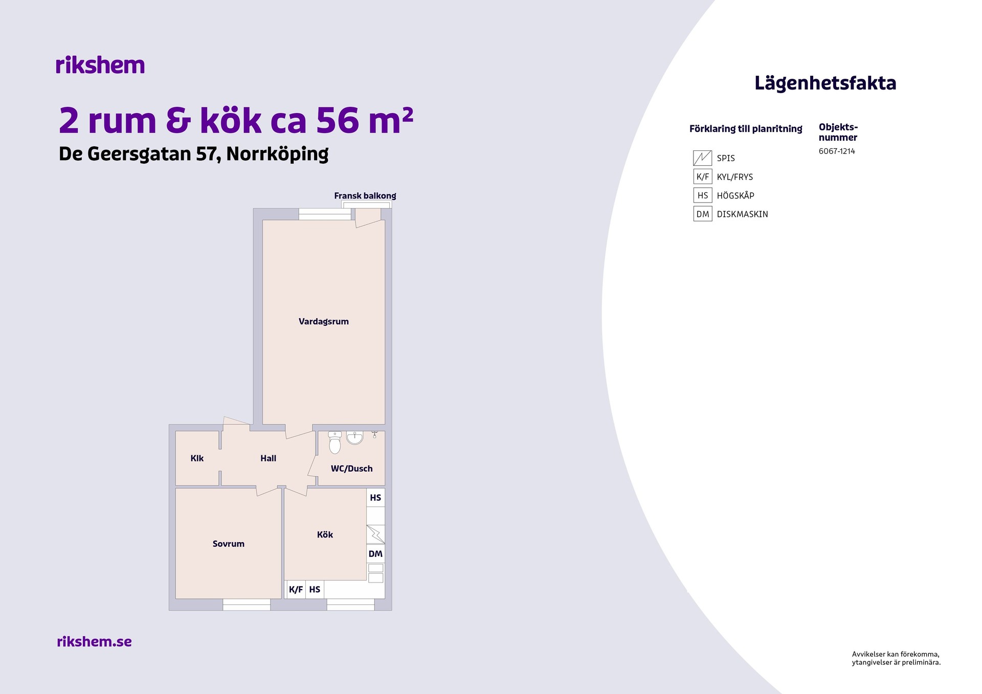 Rikshem reserverar sig mot eventuella fel eller avvikelser som kan förekomma i lägenhetsannonsen eller i planritningen.
