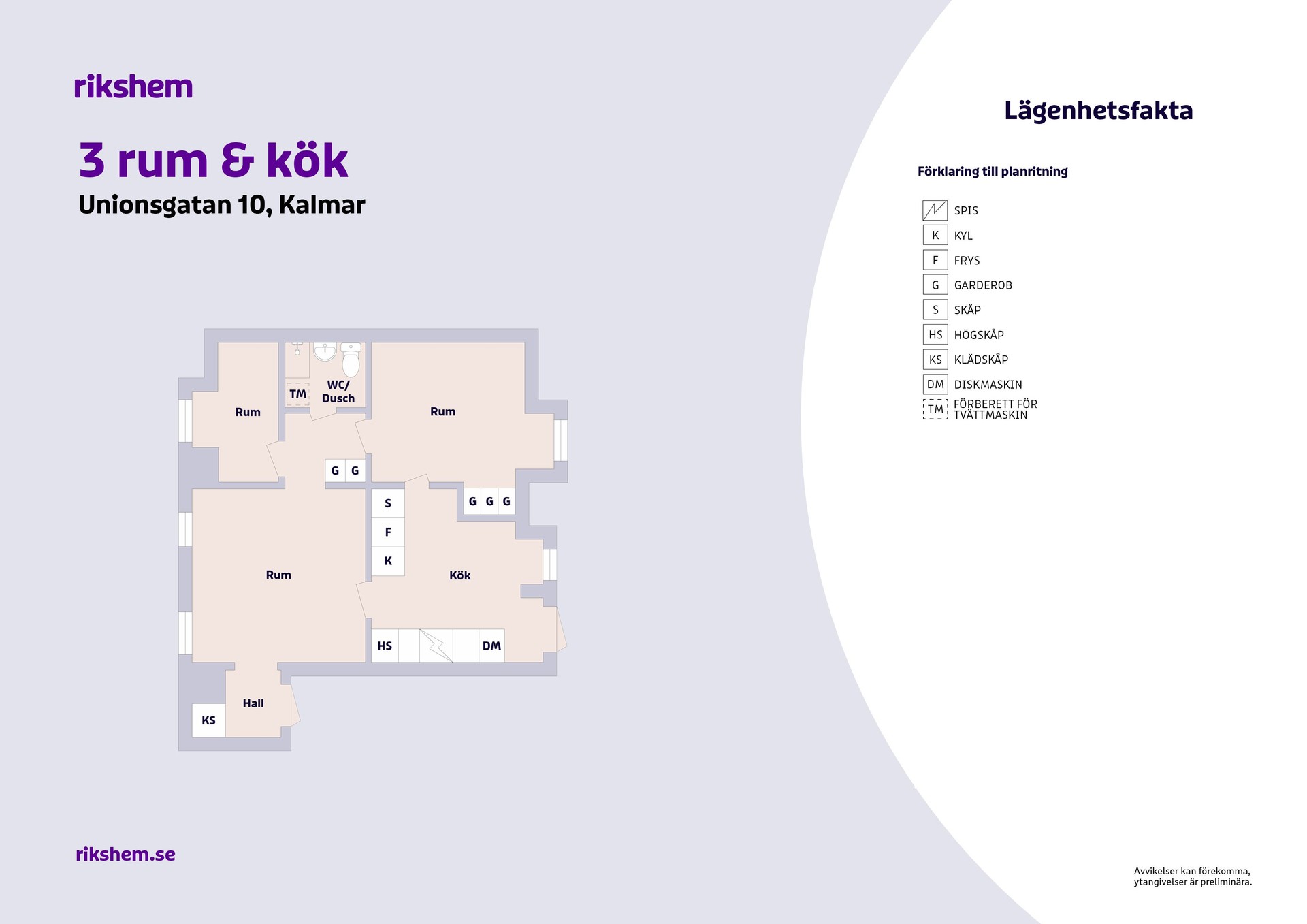 Rikshem reserverar sig mot eventuella fel eller avvikelser som kan förekomma i lägenhetsannonsen eller i planritningen.