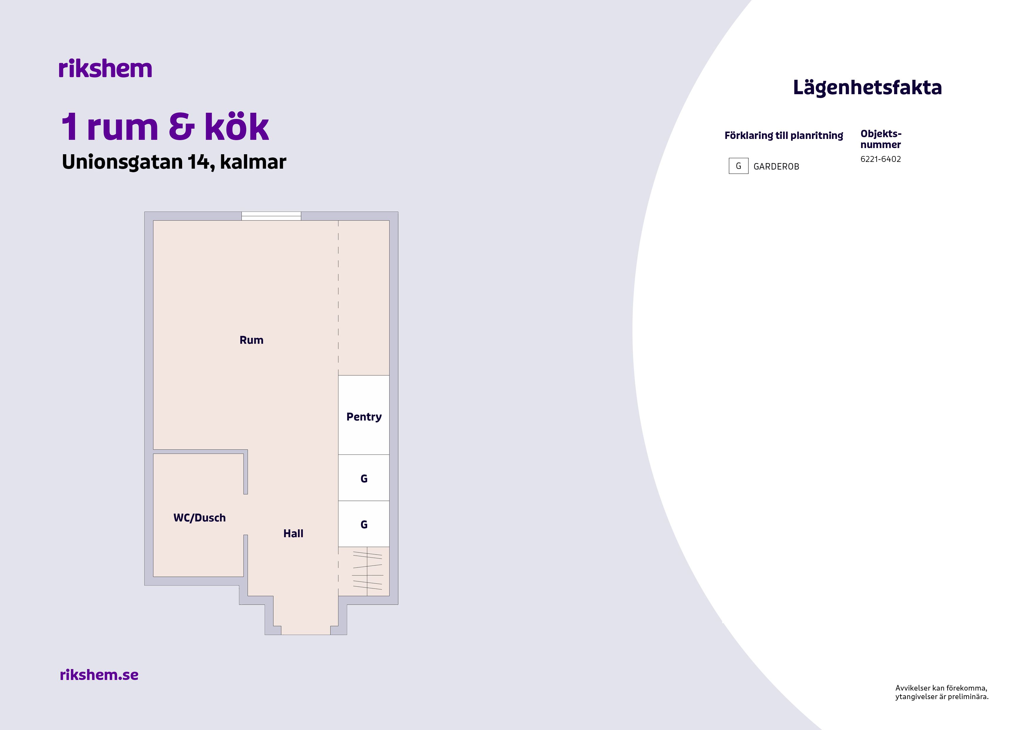 Rikshem reserverar sig mot eventuella fel eller avvikelser som kan förekomma i lägenhetsannonsen eller i planritningen.