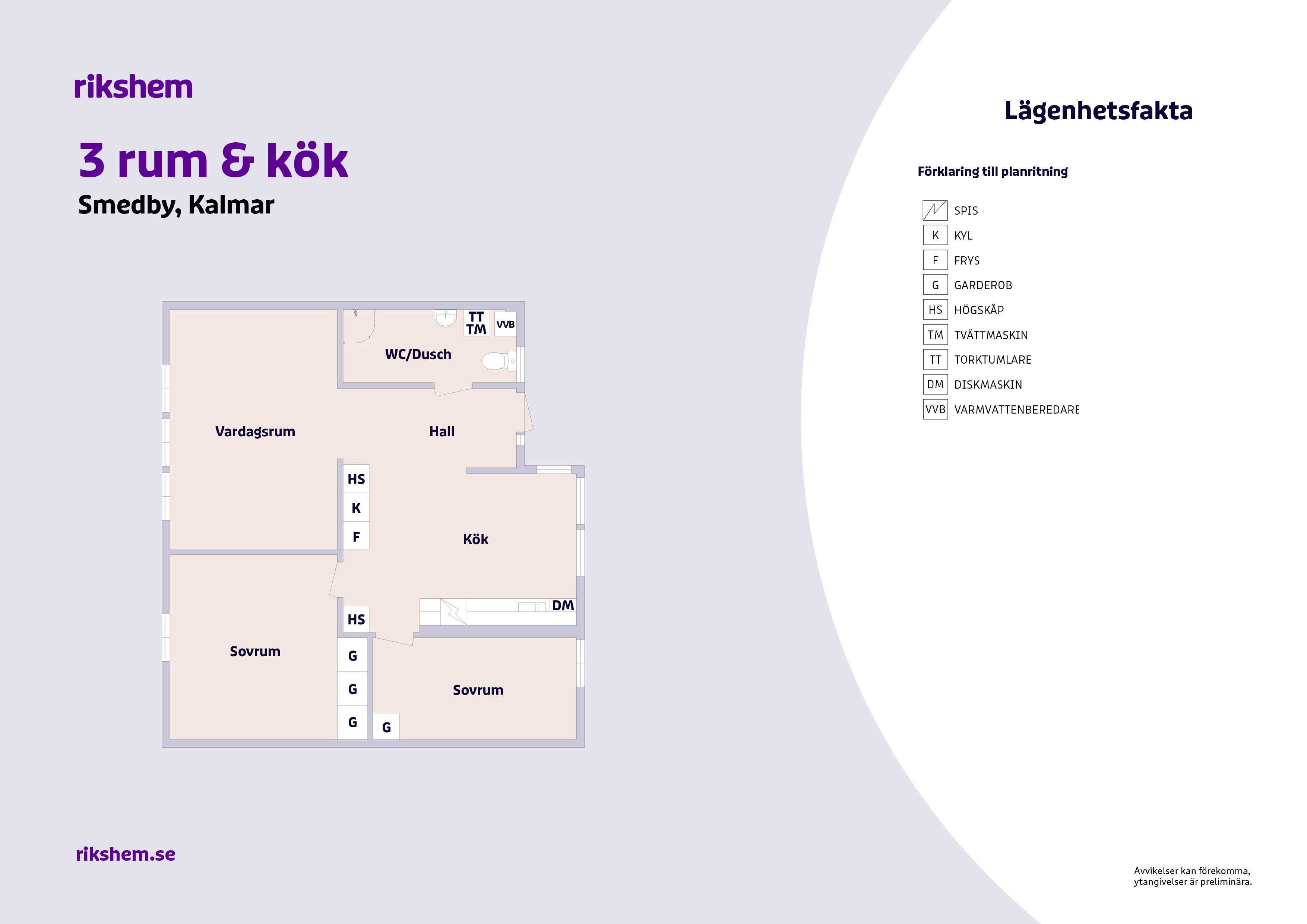 Rikshem reserverar sig mot eventuella fel eller avvikelser som kan förekomma i lägenhetsannonsen eller i planritningen.