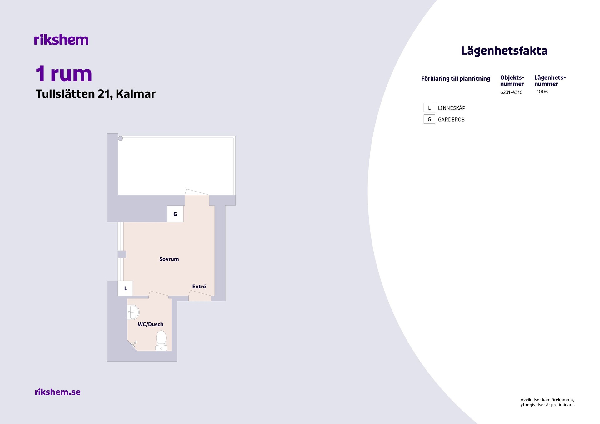 Rikshem reserverar sig mot eventuella fel eller avvikelser som kan förekomma i lägenhetsannonsen eller i planritningen.