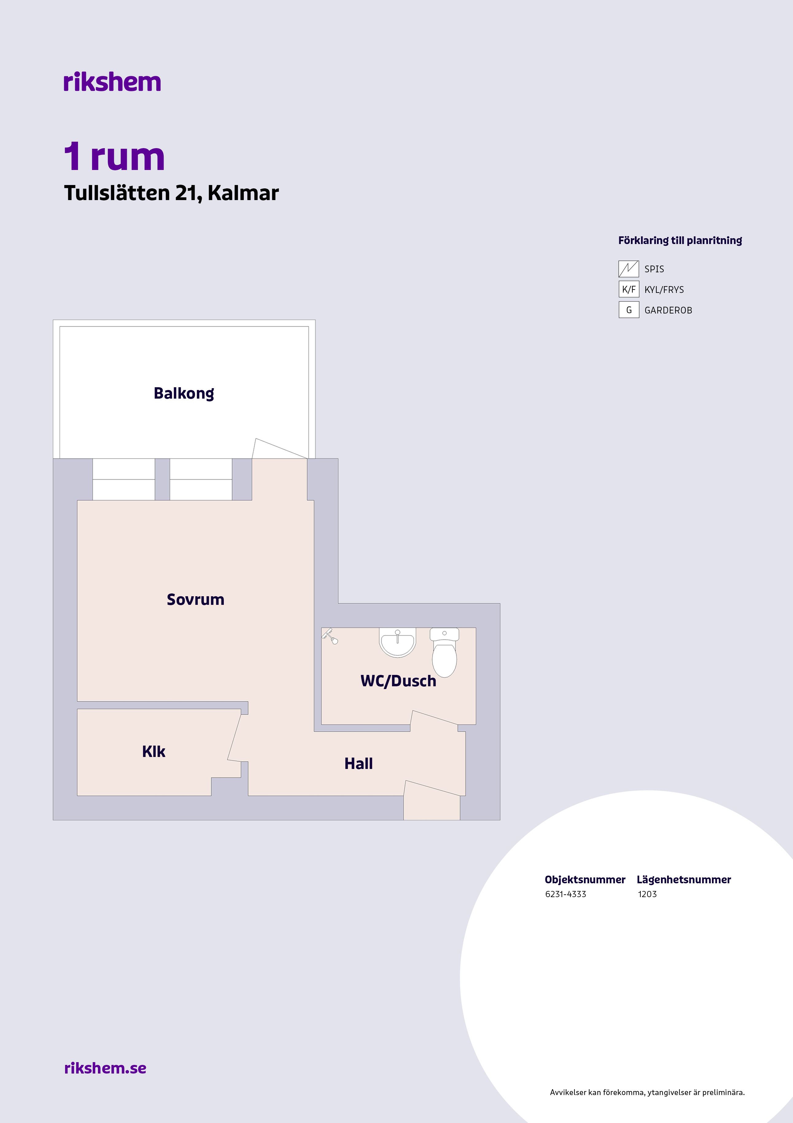 Rikshem reserverar sig mot eventuella fel eller avvikelser som kan förekomma i lägenhetsannonsen eller i planritningen.