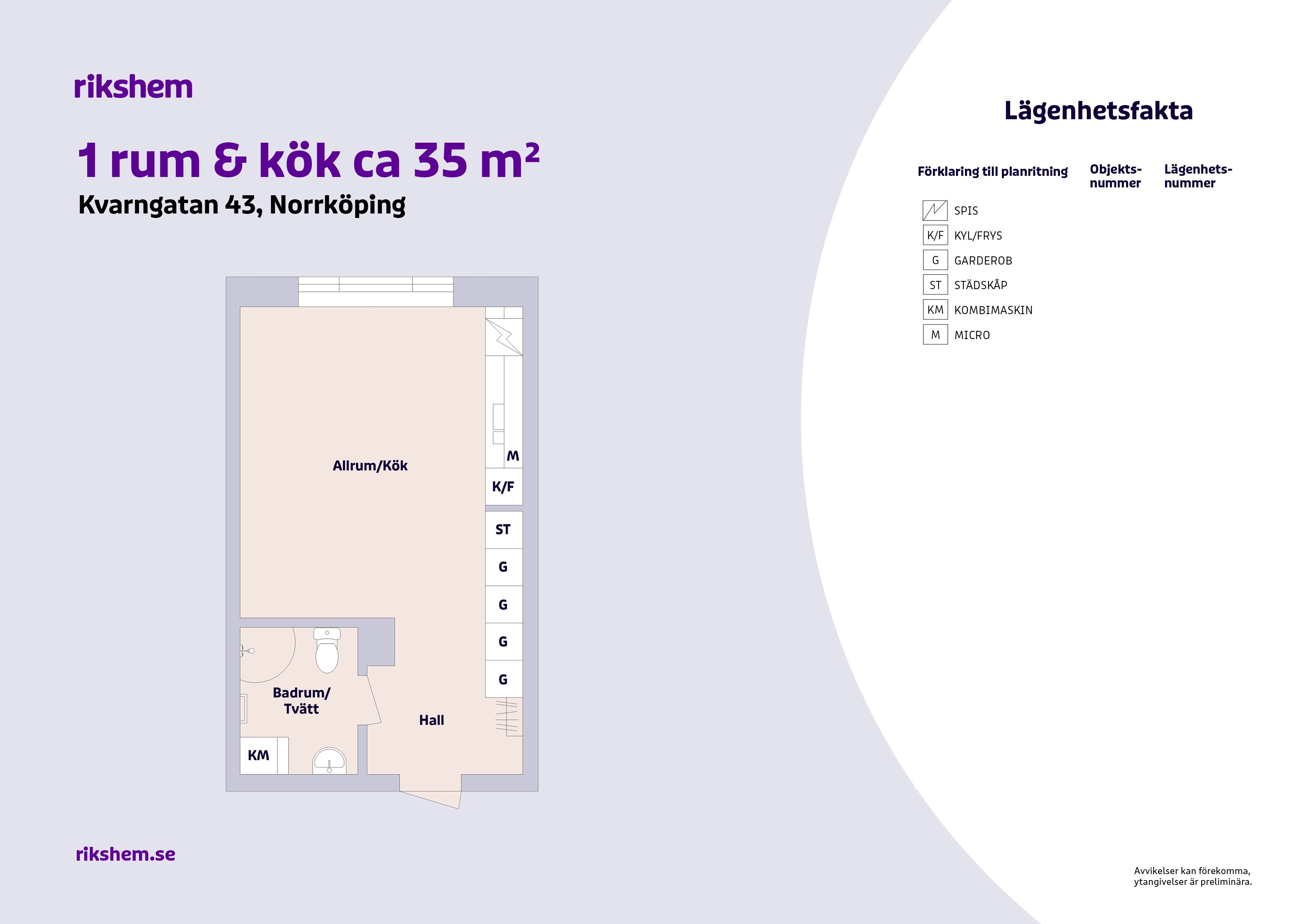 Rikshem reserverar sig mot eventuella fel eller avvikelser som kan förekomma i lägenhetsannonsen eller i planritningen.