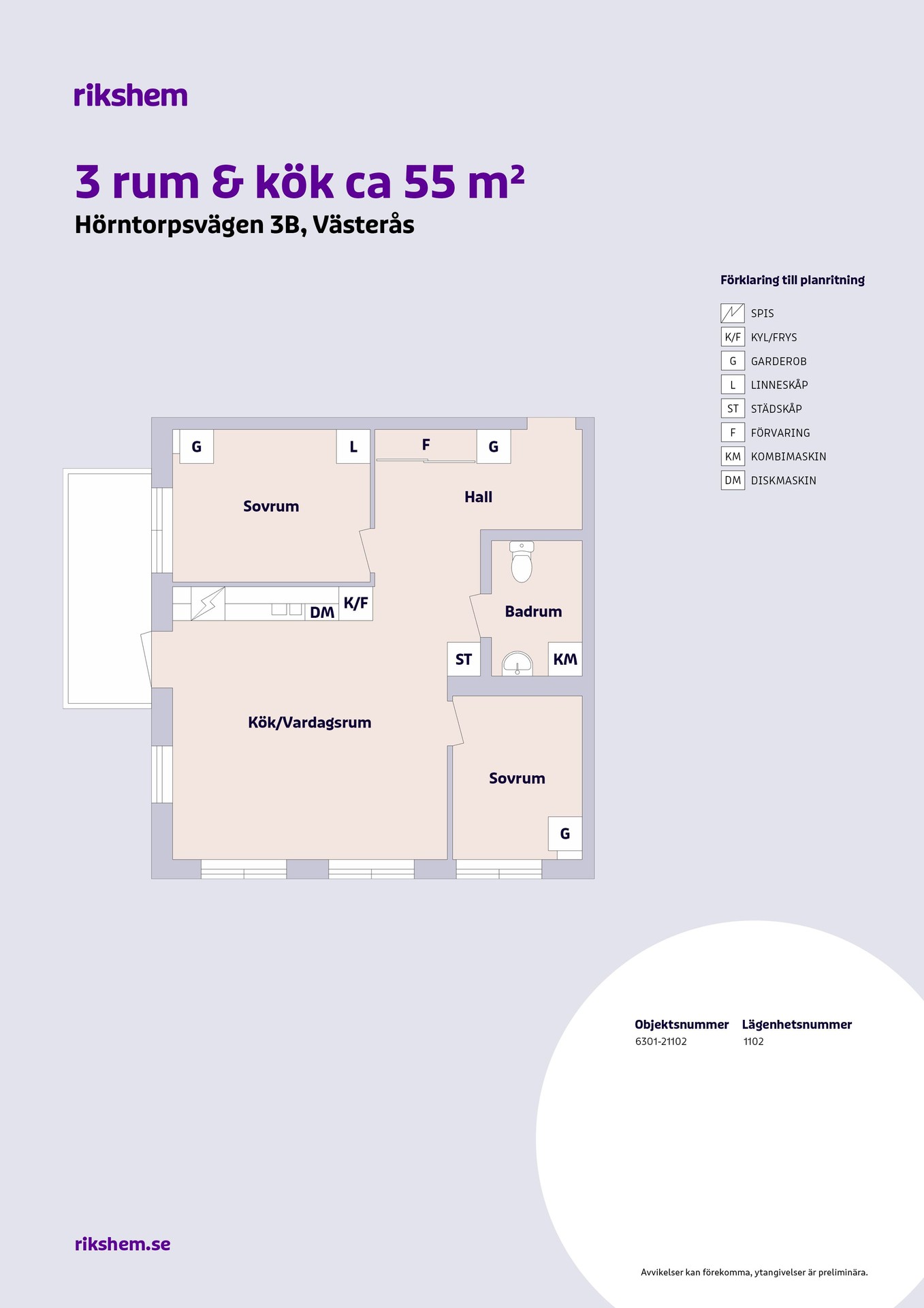 Rikshem reserverar sig mot eventuella fel eller avvikelser som kan förekomma i lägenhetsannonsen eller i planritningen.