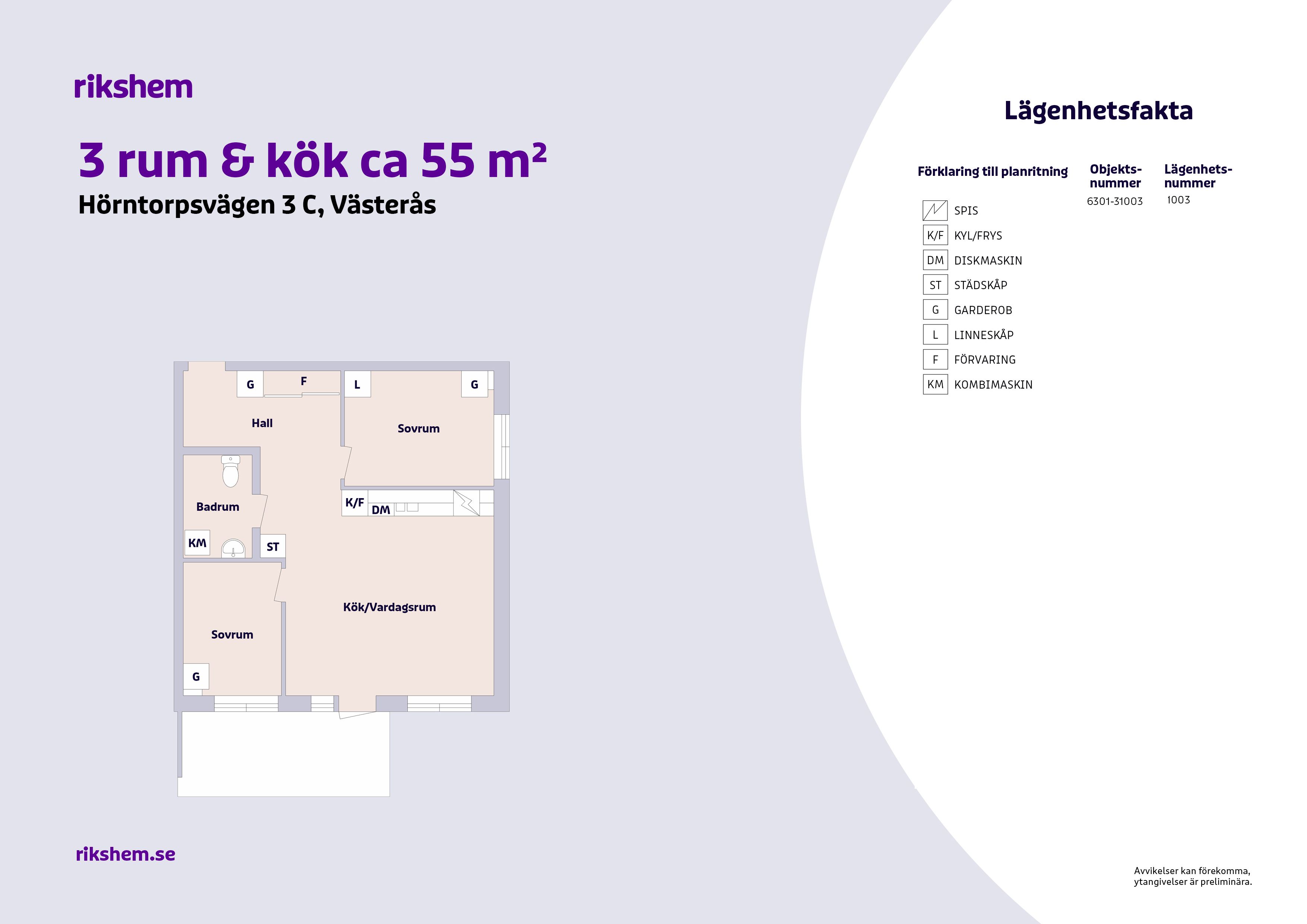 Rikshem reserverar sig mot eventuella fel eller avvikelser som kan förekomma i lägenhetsannonsen eller i planritningen.