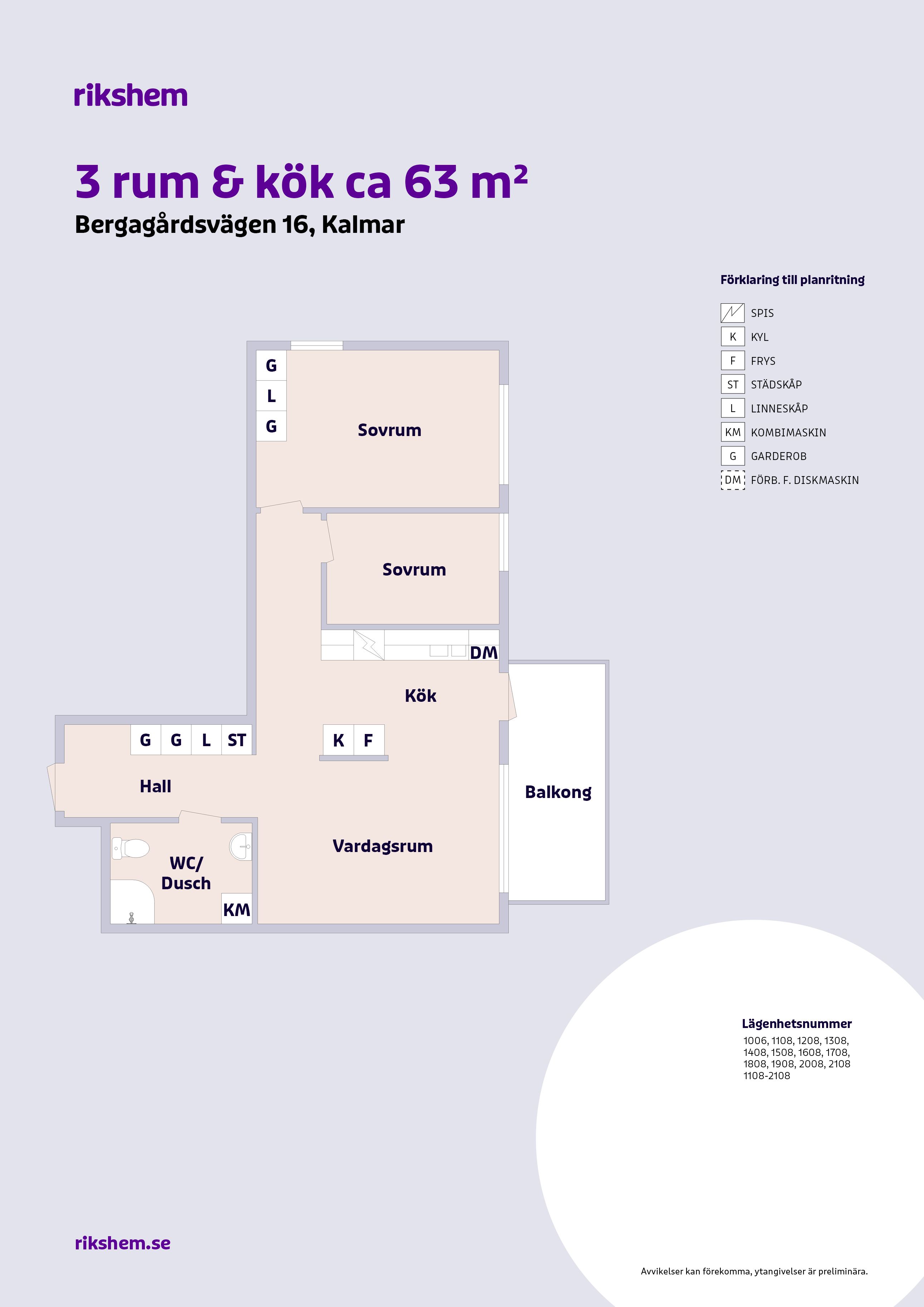 Rikshem reserverar sig mot eventuella fel eller avvikelser som kan förekomma i lägenhetsannonsen eller i planritningen.