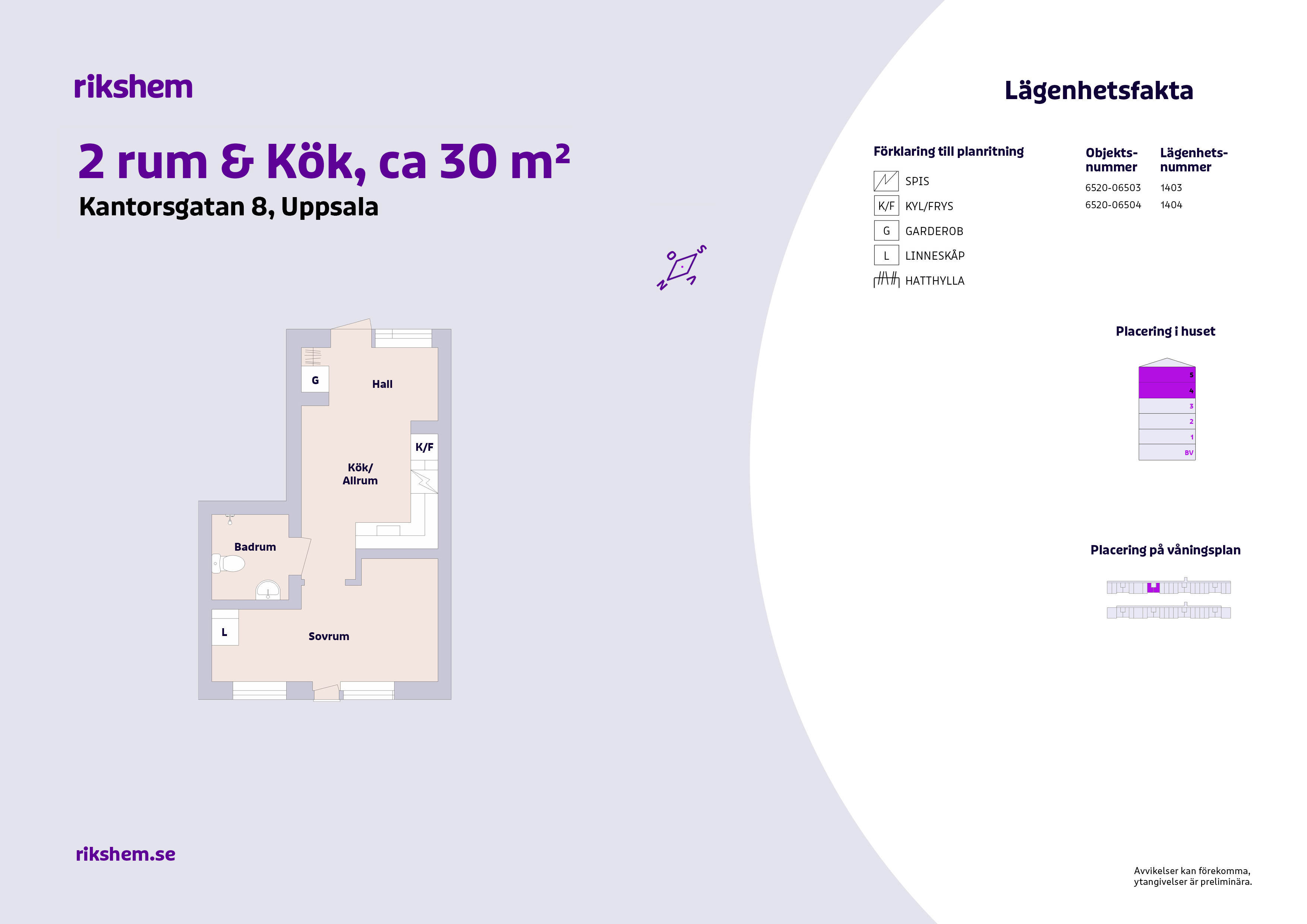 Rikshem reserverar sig mot eventuella fel eller avvikelser som kan förekomma i lägenhetsannonsen eller i planritningen.