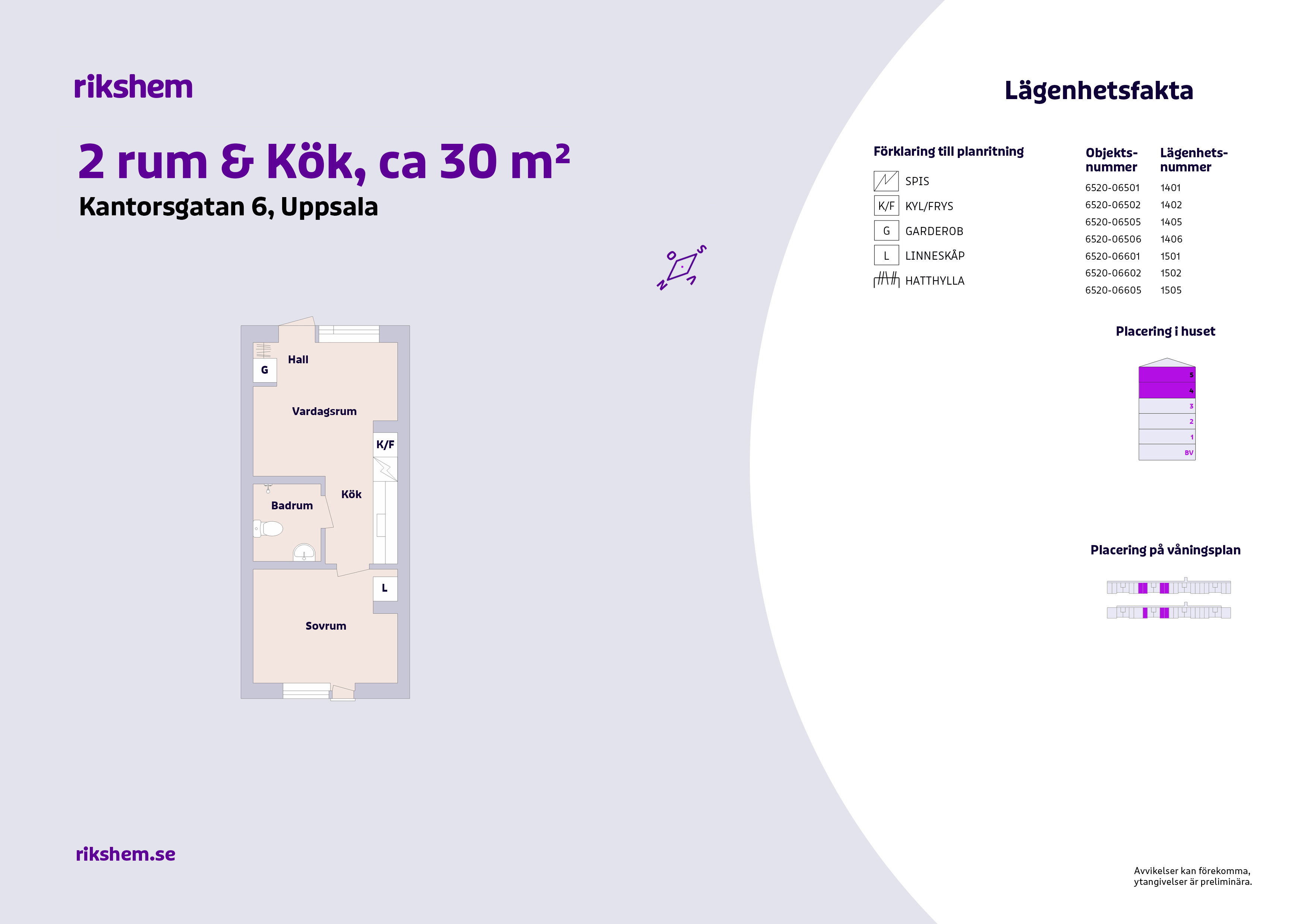 Rikshem reserverar sig mot eventuella fel eller avvikelser som kan förekomma i lägenhetsannonsen eller i planritningen.