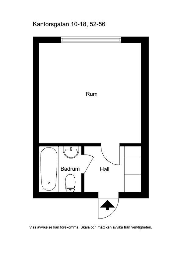 Studentrum på 19 kvm med hall samt egen toalett och badkar.