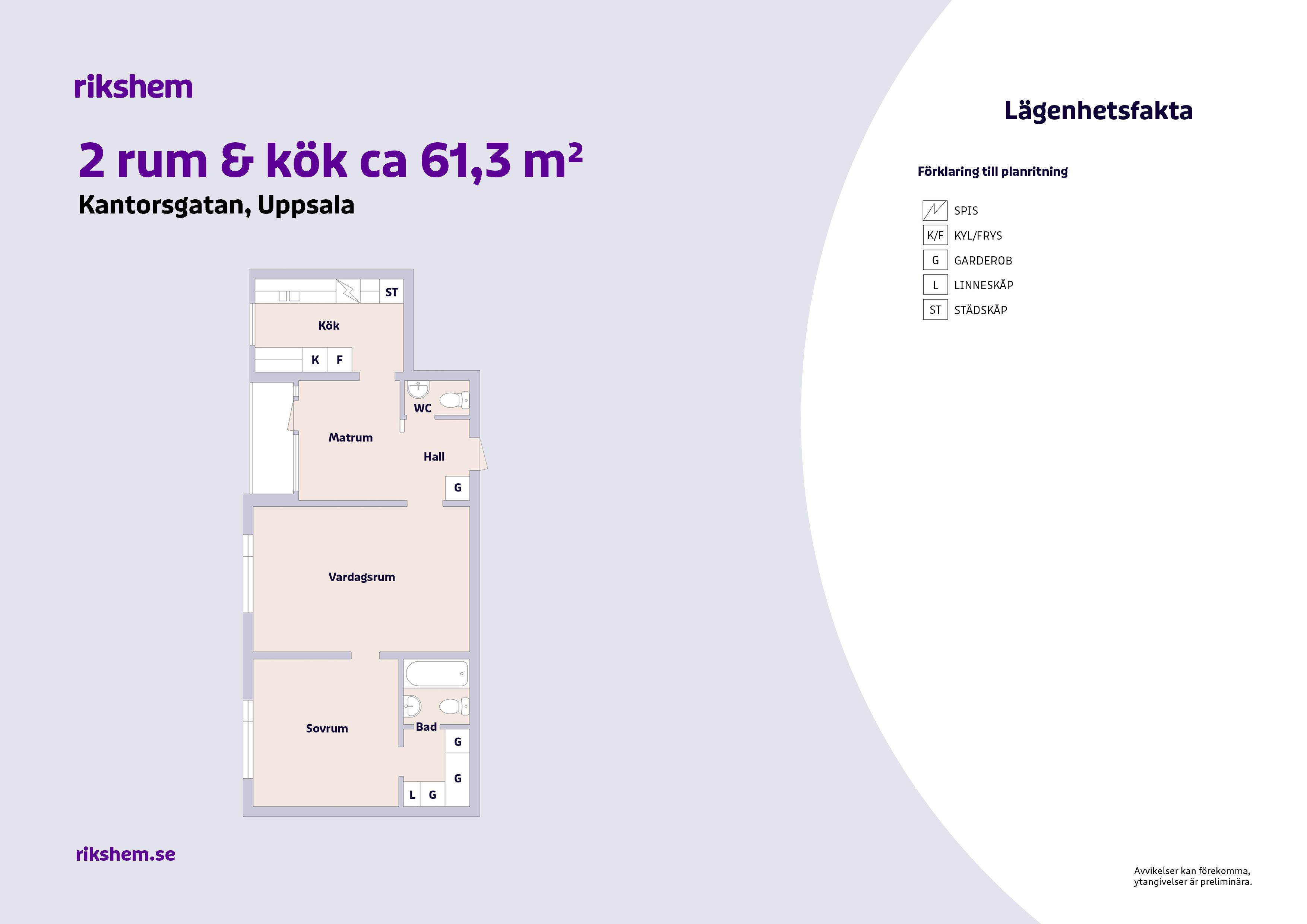 Rikshem reserverar sig mot eventuella fel eller avvikelser som kan förekomma i lägenhetsannonsen eller i planritningen.