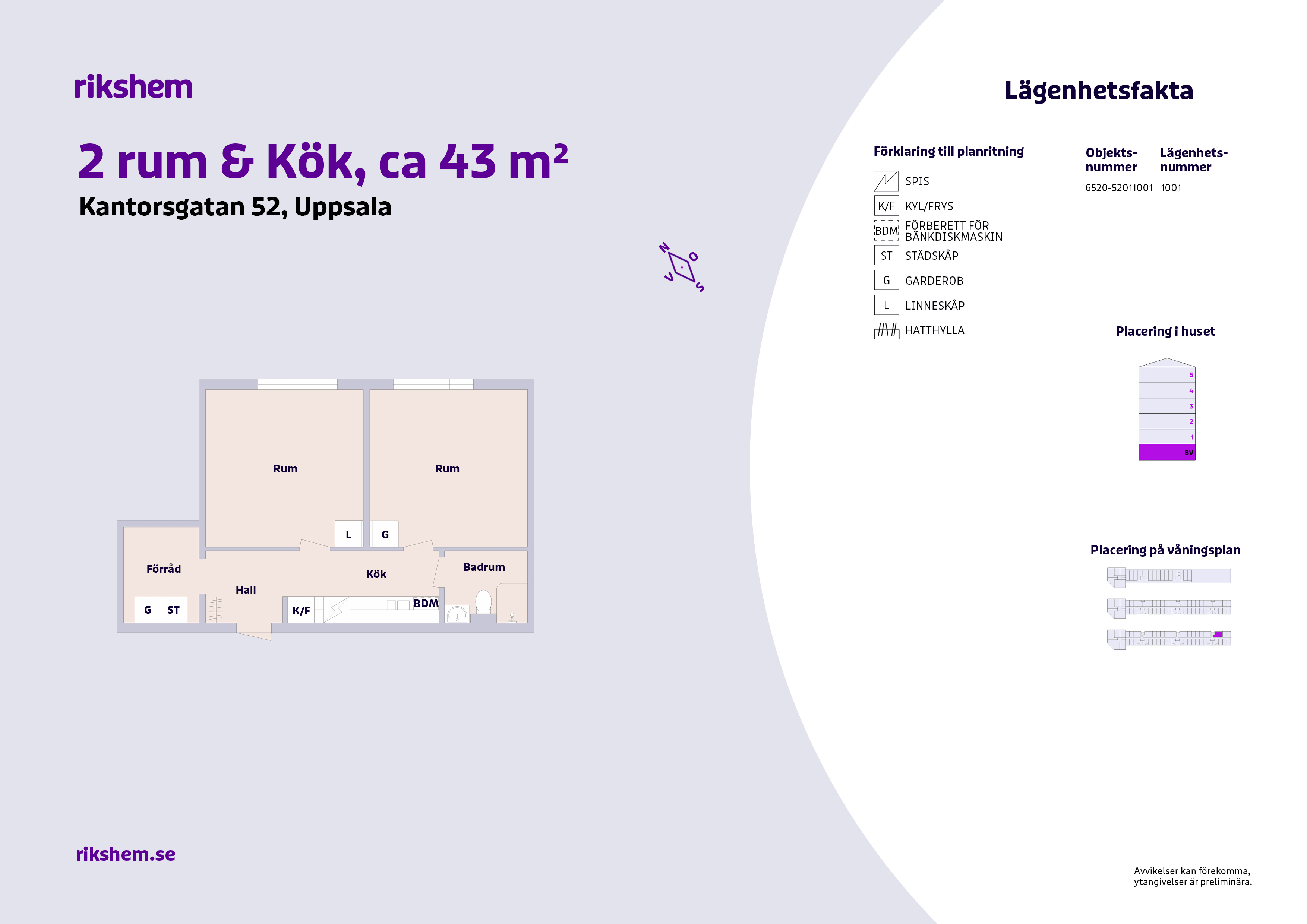 Rikshem reserverar sig mot eventuella fel eller avvikelser som kan förekomma i lägenhetsannonsen eller i planritningen.