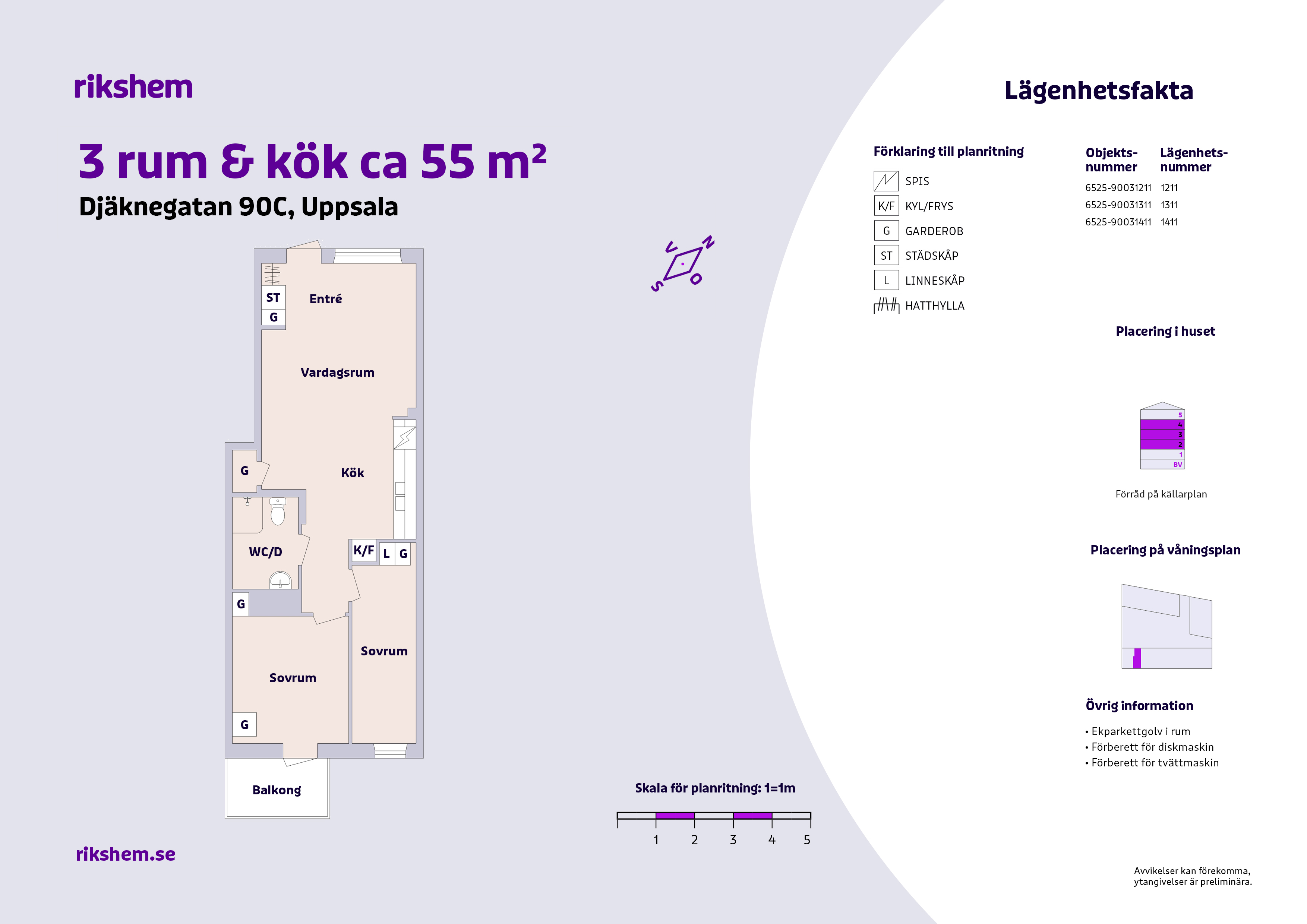 Rikshem reserverar sig mot eventuella fel eller avvikelser som kan förekomma i lägenhetsannonsen eller i planritningen.