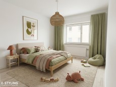 Samtliga sovrum och hall har vita väggar och laminatgolv.