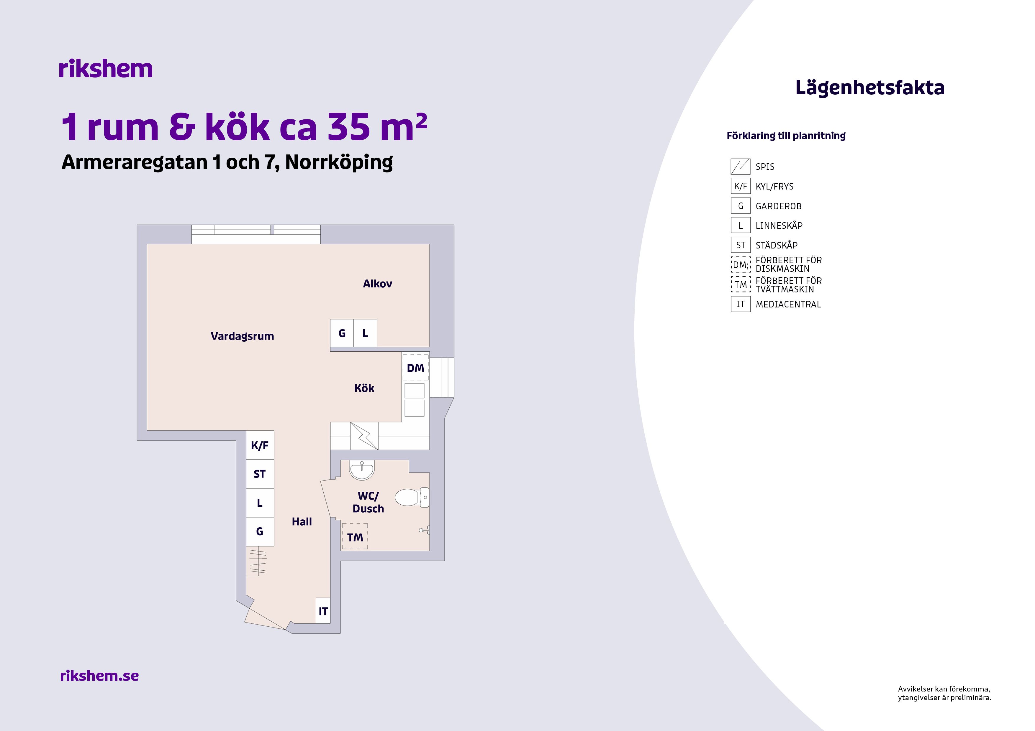 Rikshem reserverar sig mot eventuella fel eller avvikelser som kan förekomma i lägenhetsannonsen eller i planritningen.