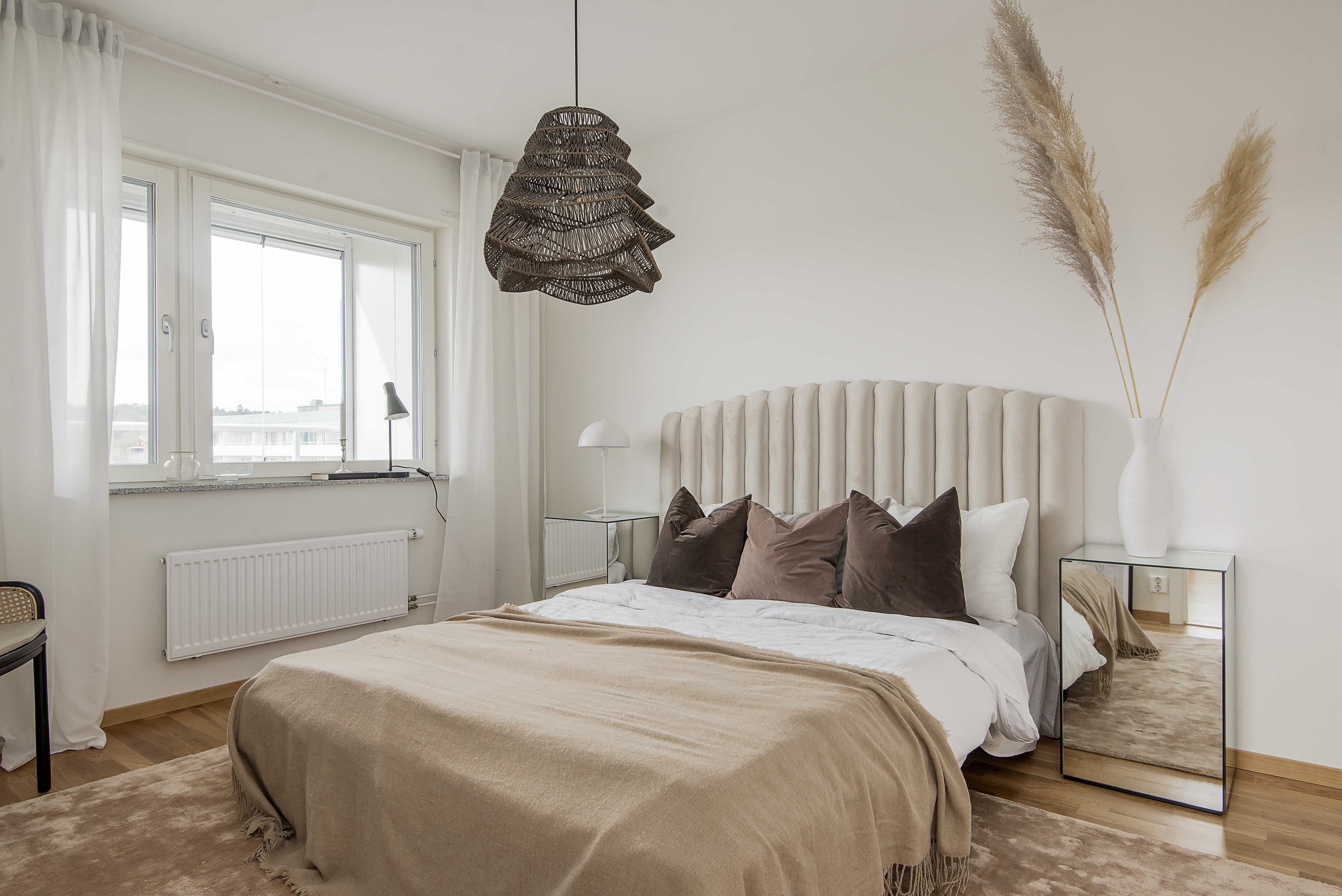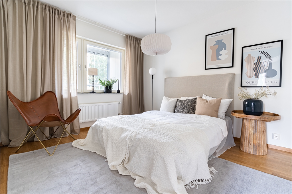 - Lättmöblerat sovrum med förvaring i form av garderober.